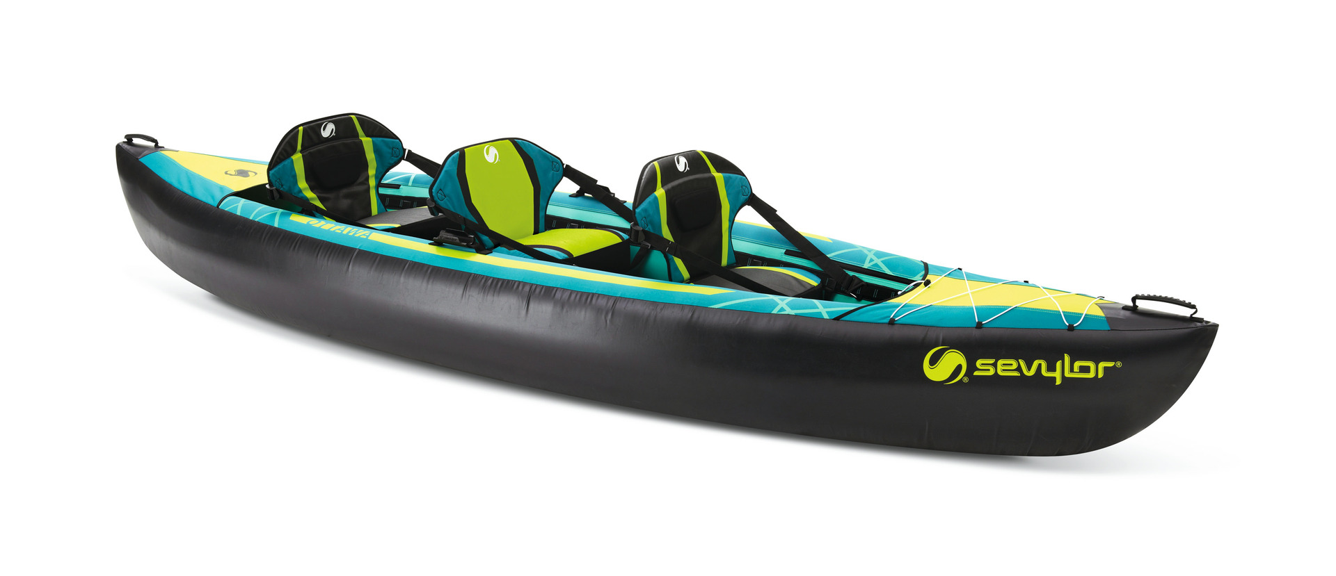 The new Sevylor Ottawa is an aerodynamically designed kayak for all types of water. It was created with premium comfort in mind and introduces an innov-ative seating construction with Sevylor’s patented Sevy-Spension that attaches the seats directly to the inner side chambers. That ensures the seats do not rest on the bottom of the kayak and reduces drag by 15 per cent, keeping the pad-dler dry throughout the ride. Sevylor’s Seatography feature has a quick floor guide for personalised seat placement prior to beginning any trip. With an additional, removable child’s seat the Sevylor Ottawa may be turned from a two-person- to a family kayak. To provide particularly high comfort, the Ottawa comes with FlexiRest seats with an adjustable backrest, lumbar support and mesh pocket.