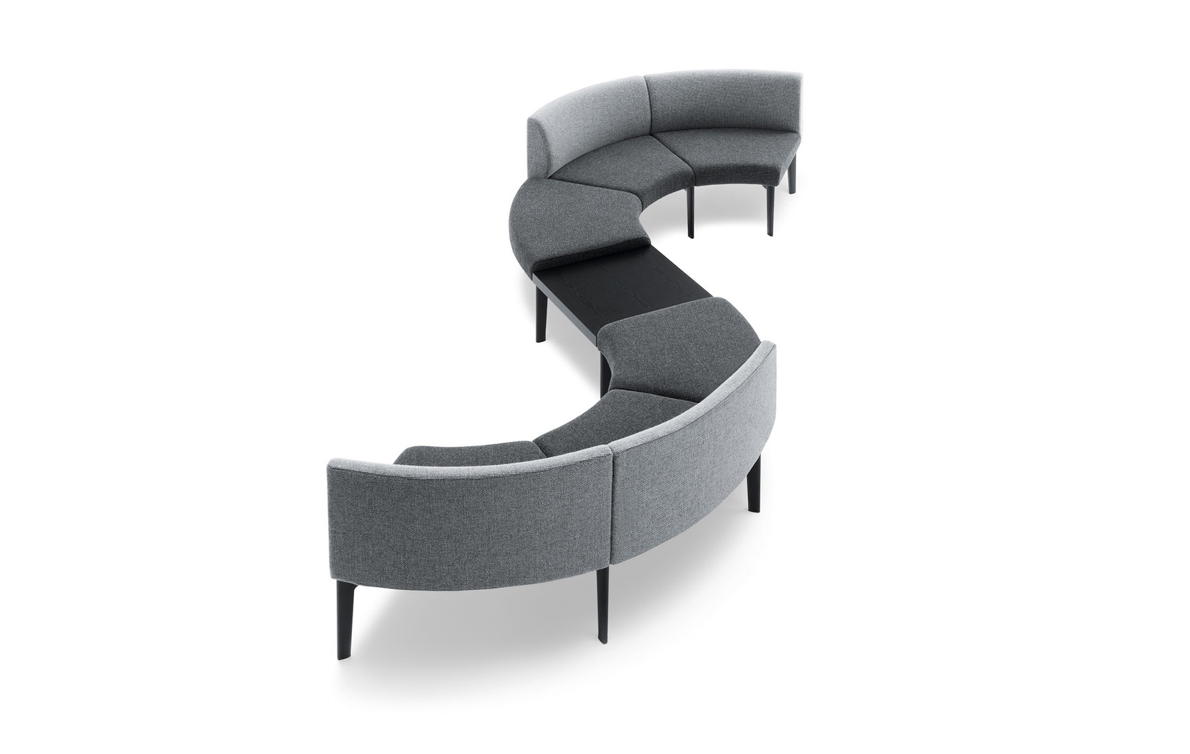 With versatile combinations and multifunctional use, the se:works modular sofa programme complies with the different requirements of modern work environments. The parametric basic structure facilitates centimetre-precise adaptations, allowing the creation of comfortable work and meeting areas even in small rooms. Besides standard formations such as U-shapes, banks and circles, it allows for numerous individual designs. Practical tables and trays are very easily integrated.