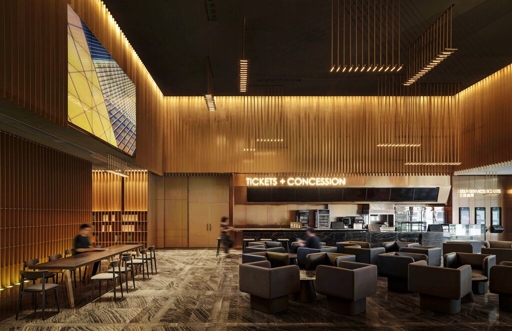 As film music has become an integral part of the cinema experience, it also played a major role in the interior design of the SFC Shangying Cinema Luxe. Thus, the design concept of the cinema is inspired by film music, but also by the name of the shopping centre in which the cinema is located, which includes the Chinese character for the word “piano” in its name. Since a piano, like many other classical instruments, has strings, the design developed the idea of “strings” as a theme for the cinema’s interior. With a wink and in the hope that this interior will in turn inspire a composition for a timeless film classic, the entire interior is defined by central visual elements reminiscent of strings that frame the foyer and run through the cinema hall and the newly furnished bookshop. Guided right from the beginning by the image of ancient scholars playing musical instruments and reading in tranquillity, these design elements aim to intensify the highly apt combination of the two important cultural assets of film and book. The walls are clad almost continuously from floor to ceiling with vertical frames of wooden slats, symbolically marking the spectrum from the lowest to the highest note, complemented by hanging lamps in a strict parallel arrangement.Statement by the juryThe image of strings, which is meant to convey the high value of film music, has been implemented in an outstandingly credible way in the design of this cinema interior. The parallel string arrangement of a piano or other classical instrument is consistently found as slats on the walls, in the narrow rows of shelves in the bookstore and even in the lighting, thus conveying the design concept in a coherent way.