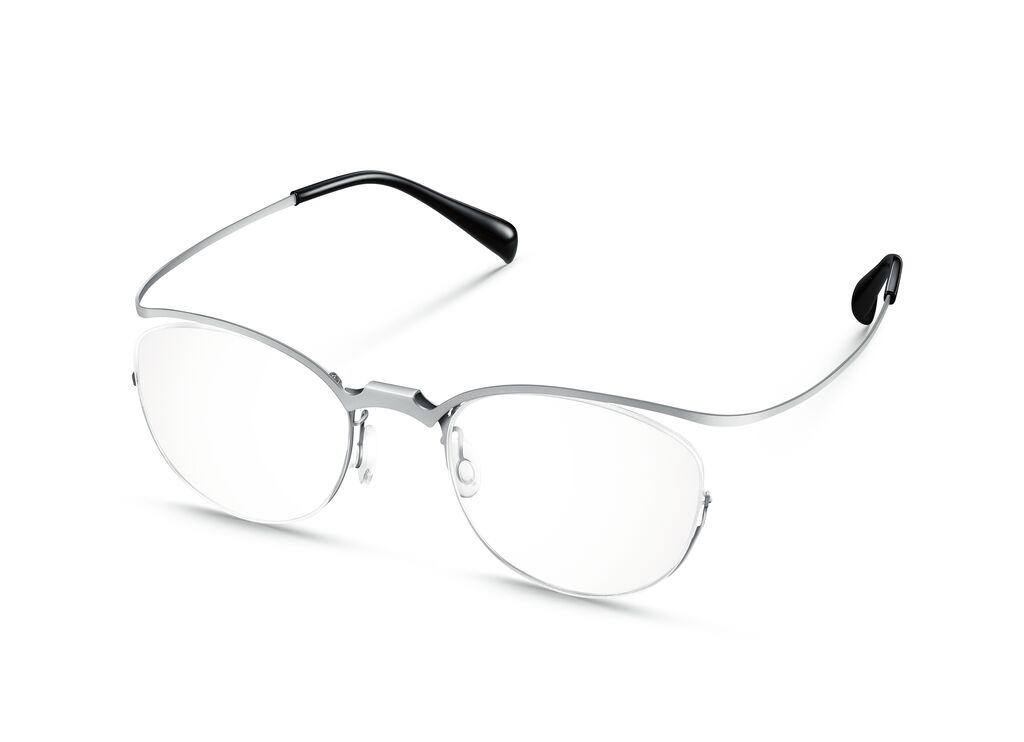 The aim of this exceptionally flexible eyewear frame, made from thin sheet metal, is to prevent wear and tear to the glasses when they are frequently put on and taken off. This is possible because of a production process (patent pending) that minimises the compressive and tensile forces present between the lens groove and the lenses. Even when spreading the temples widely, no force is exerted on the frame area to which the glasses are fixed. The SFK-20601 is manufactured in a single piece and is not shaped into the eyewear frame until it is folded twice.