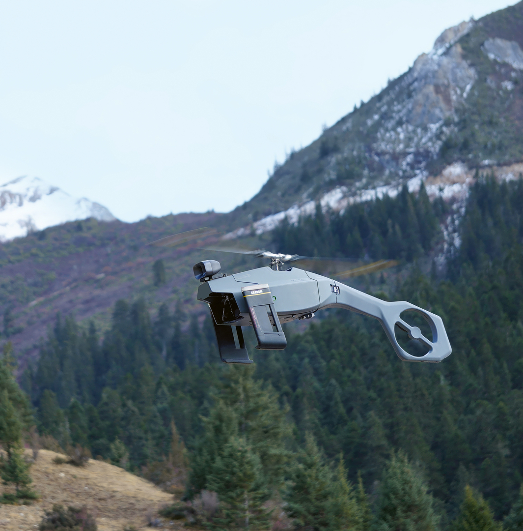 Originally designed as flying training targets for military purposes, drones are evolving rapidly thanks to technological advances, new materials and design solutions. Shadow is an electric-powered helicopter drone that has been completely redesigned as a next-generation intelligent flight platform for civilian applications such as firefighting, maritime affairs, public safety, energy and surveying. Inspired by the shape of marine animals such as dugongs and seahorses, Shadow has a streamlined exterior and a lowered tail boom with an integrated encapsulated tail rotor. This design allows for a shorter and more compact drone body. The design of the top of the fuselage aims to reduce in-flight turbulence caused by the irregular shape of the propeller head, which affects flight stability and duration. As a result, this unmanned helicopter remains stable even at high flight speeds, enabling fast transfers and efficient missions. The fuselage, on the other hand, is characterised by soft lines and follows minimalist design principles. The drone’s underlying design concept is technically orientated and uses clean lines and geometries to achieve a robust, futuristic aesthetic. The grey and black colour scheme and uniform appearance ensure visual longevity. By combining vacuum and foam moulding processes for the drone fuselage, it was possible to achieve greater production efficiency with a lower environmental impact. To meet the various mission requirements, Shadow uses lightweight carbon fibre materials and weighs less than 7 kg. The drone can be disassembled without tools and then easily transported. It is controlled via a user-friendly touchscreen interface without physical joysticks. “Shadow is an innovative and manoeuvrable drone showcasing a very minimalist design. The appearance is highly technical and at the same time confidence-inspiring, which increases the acceptance of this drone,” said the jury. “Shadow successfully combines new production techniques and lightweight materials with improved functionality and an excellently designed human-machine interaction.”