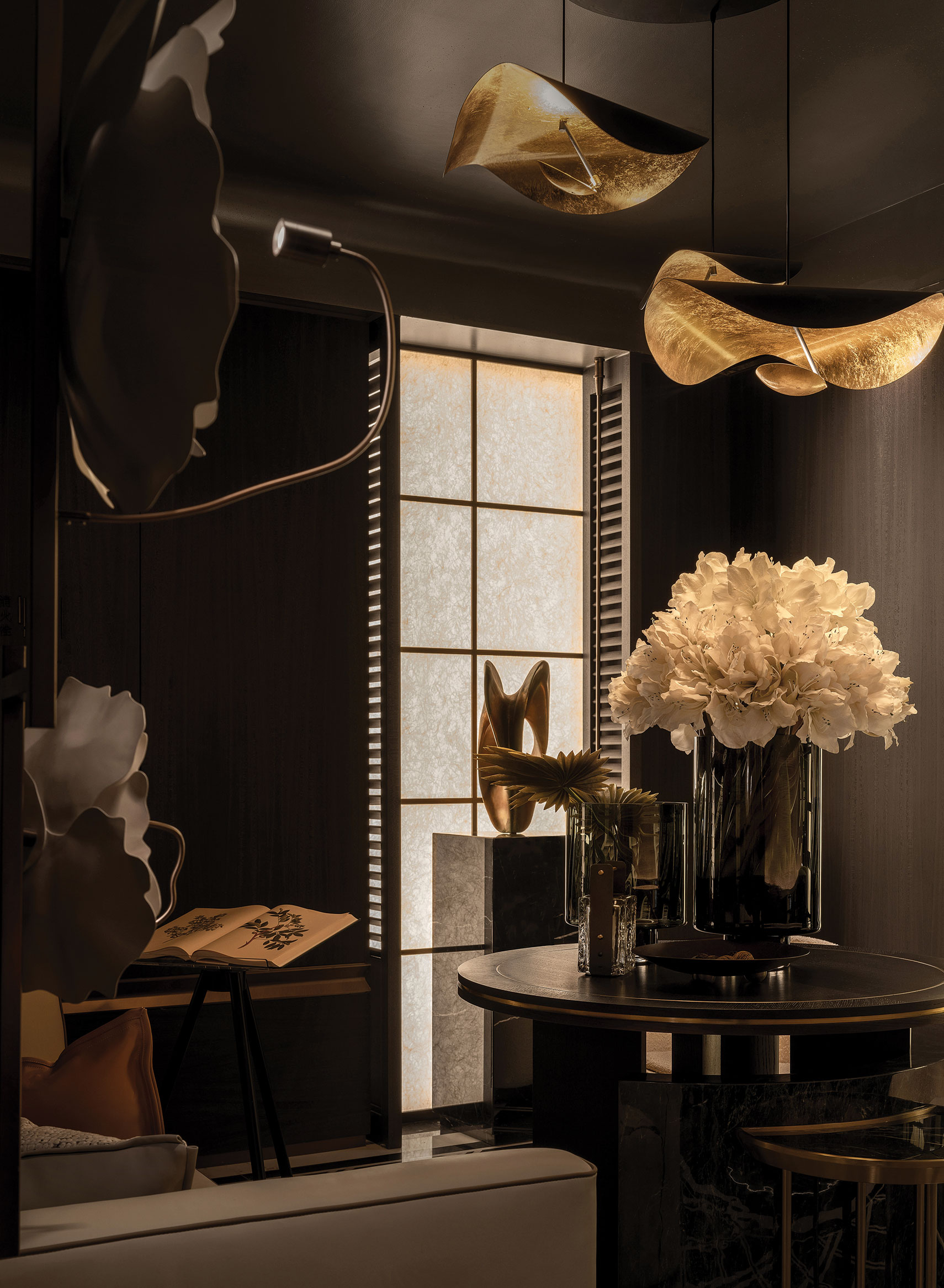 Inspired by the magnolia planted at Xijiao Hotel during an SCO summit, this space embodies peace, unity, and elegance. Magnolia motifs thread through black-and-gold interiors, dramatically blending minimalism with nobility. Clean lines and tactile materials evoke a cultural spirit — cosmopolitan, open, and emotionally resonant — creating a fresh and refined atmosphere grounded in friendship, heritage, and forward-looking design.
