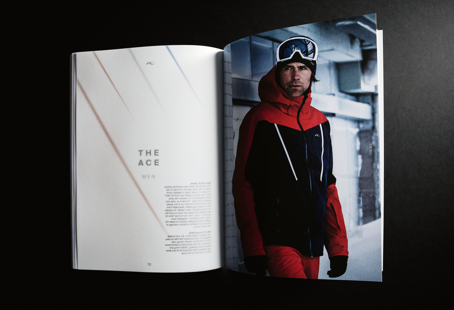 This publication presents the autumn/winter collection 2020/2021 of a sportswear manufacturer. The “Show Your Character” concept is based on the idea that each customer tells their personal story in connection with their sports passion – equipped with items from the new collection. The customer is supposed to recognise themself and their story in the design of the cover. It also serves as a feature which gives the book a special effect. Inside, large-format photographs direct the view to the actors as well as to wintry mountain landscapes, places where sportswear is used.