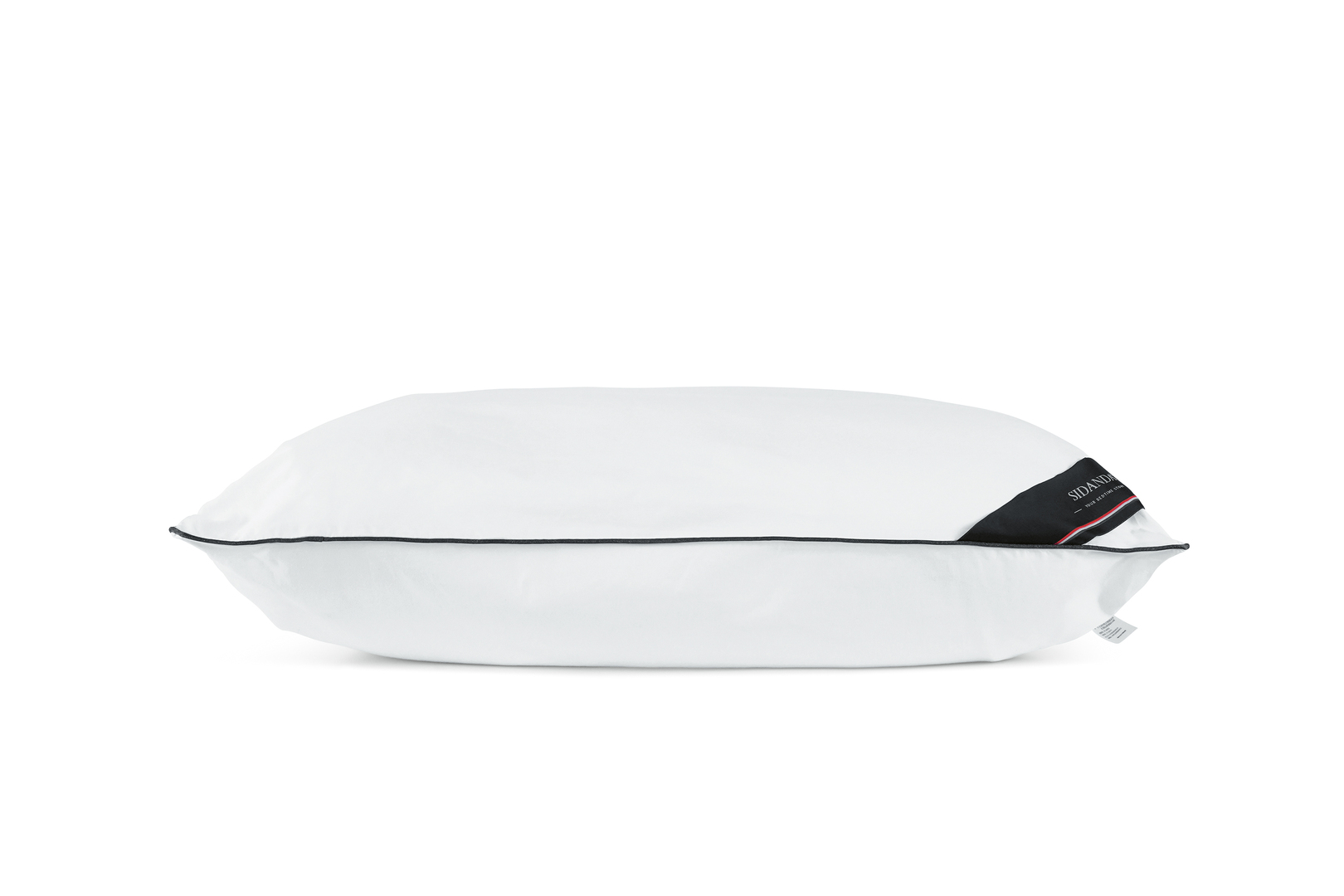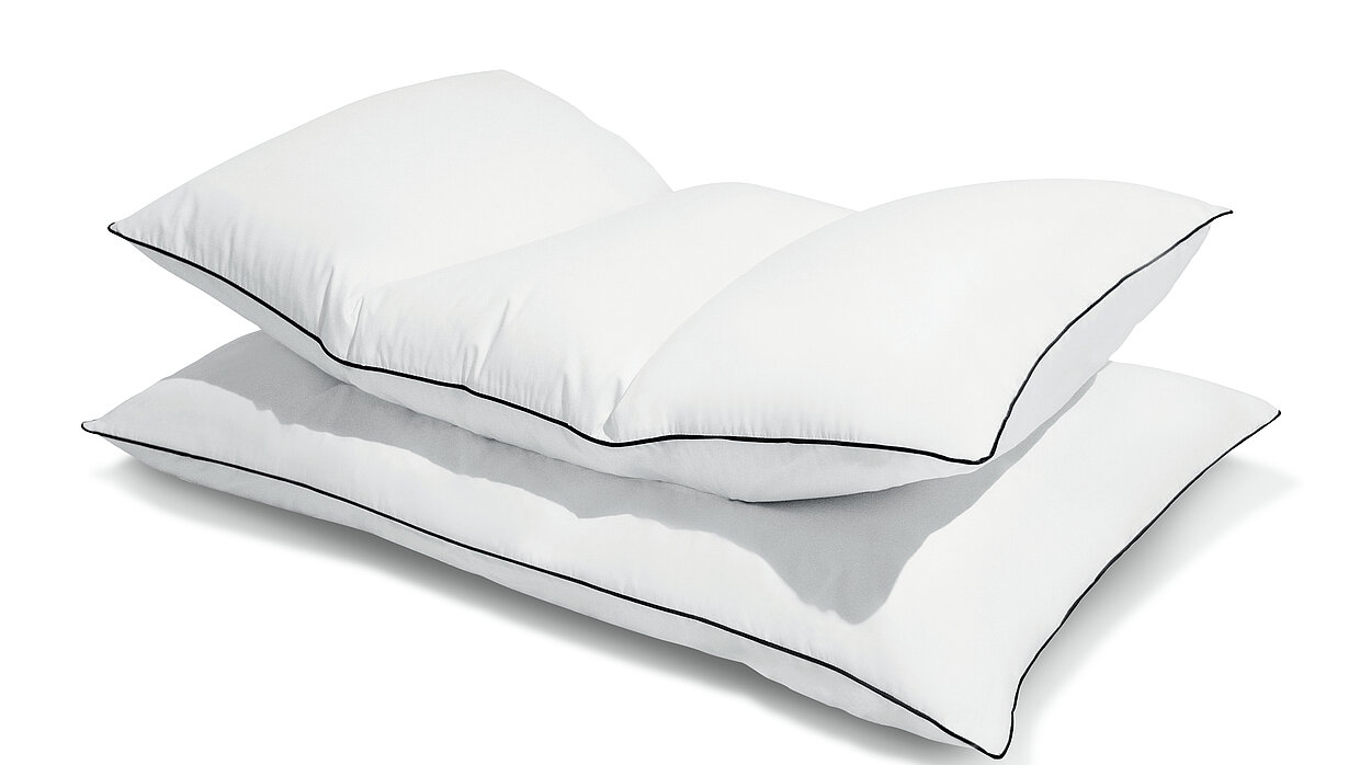 The design of the Sidanda pillow focuses on healthy sleep. It is filled with a mixture of 95 per cent large goose down and white feathers. The filling weight is calculated to provide maximum comfort. The pillow is made up of several independent sections with a hollow on the surface in the middle. Thus, it is able to offer equal amounts of softness and resistance and supports the head and neck in different sleep positions. The pillowcase has straps to attach the pillow, thereby preventing it from slipping.