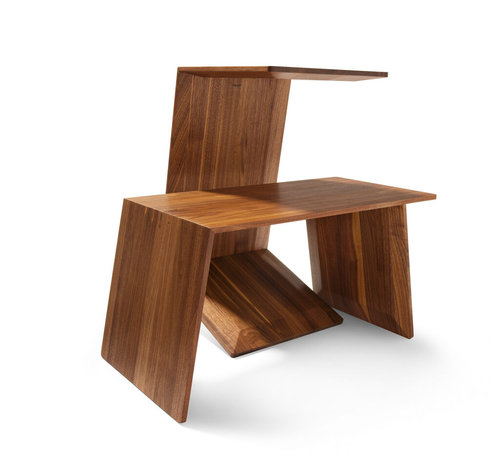 The archaic basic form of this multifunctional side table consists of three wooden surfaces; the slanted side panels give the table stability. Handcrafted mortise and tenon joints form the connection between the side panel and the table top emphasising the aesthetics of the material. sidekick gets its airy look from the subtlety of the wooden panels. The table is available in six different types of wood.