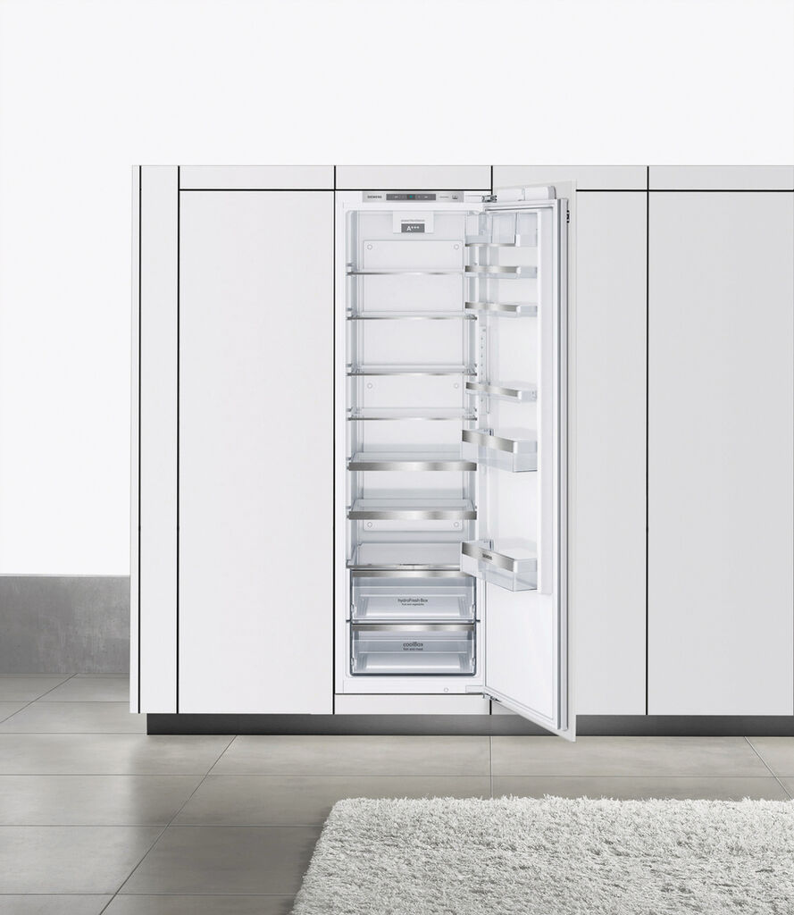 The interior design of the energy efficient built-in refrigerator is characterised by the use of robust materials and optimum illumination.