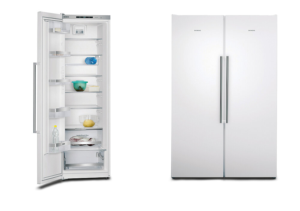 The single-door refrigerator is both energy and volume optimised. It can be installed side by side with a freezer to form a large-volume storage centre. Pull-out drawers and glass shelves offer optimum access, while an additional swivelling shelf is suited for flexible storage of bottles and chilled goods. The hydroFresh zone is designed for the storage of fruit and vegetables.