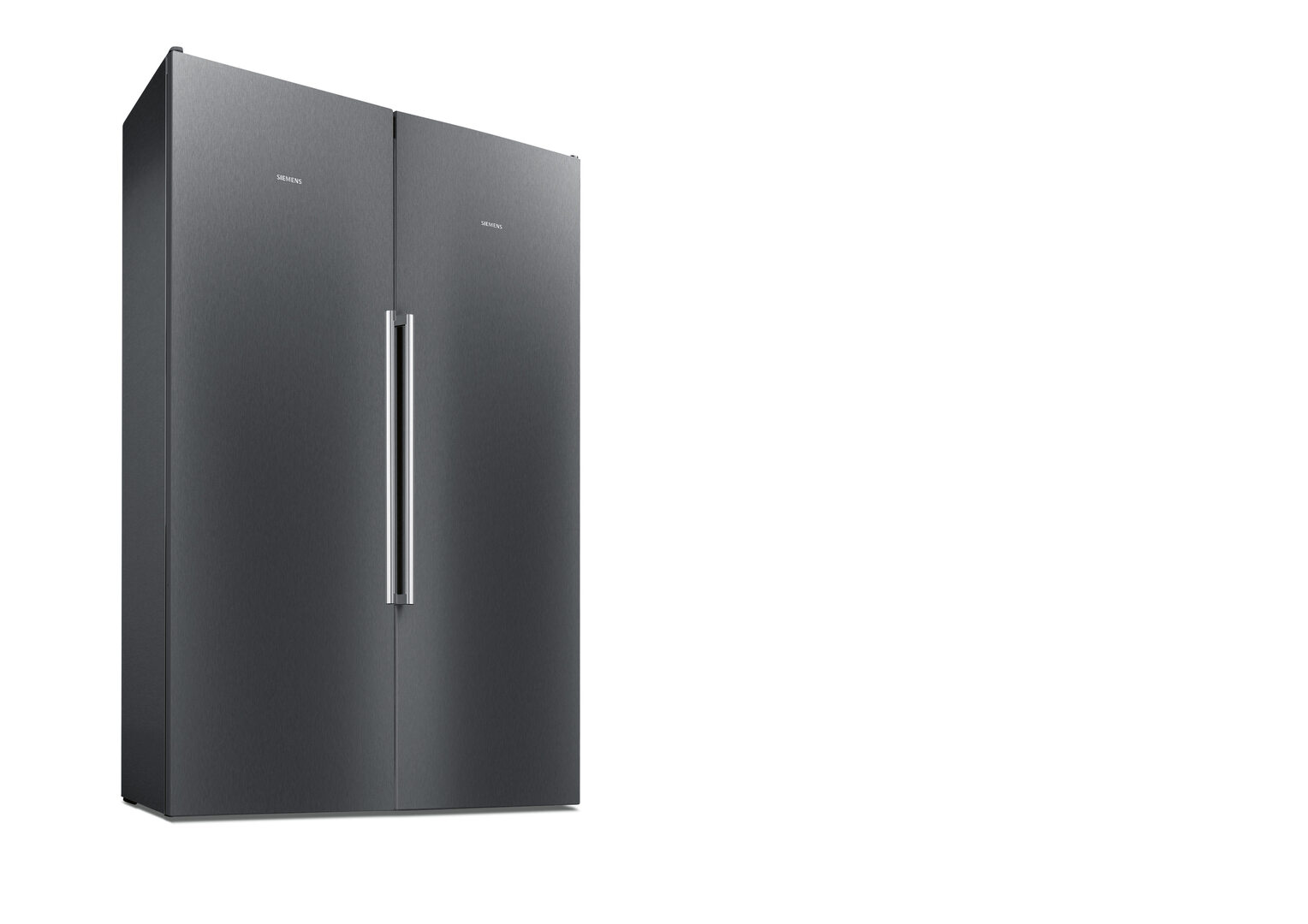 These side-by-side refrigerators can be installed adjacently or separately. The fridge-freezer does not only work its effect as an independent element but, thanks to its standard depth, also blends harmoniously with kitchen fronts. The innovative black inox material emphasises the clear formal language of the appliances. At the same time, the brushed outside surfaces with anti-fingerprint coat- ing give a warm and homely effect; their haptic qualities are equally convincing.
