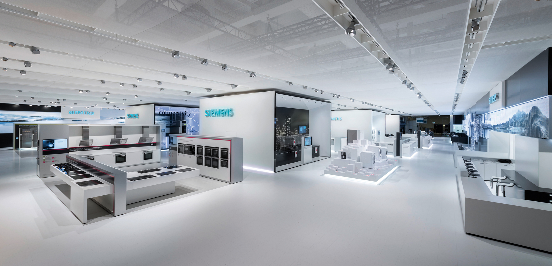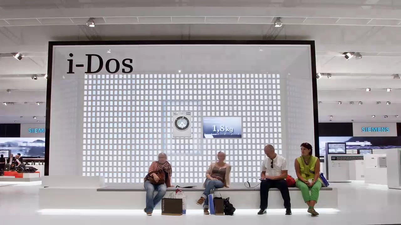 The Siemens trade fair stand at the IFA 2012 in Berlin combined around 500 products into one brand universe. The central performance element consisted of a “ShowFrame” that structured the stand into distinctively themed zones, each presenting a different home appliance product. The exterior or front of this fair trade stand acted as an animated showcase, entertaining visitors with product-related pictures and presentations. Additional product experiences were offered by allowing visitors to virtually “clean stains” or “sort dishes” via a touchscreen.