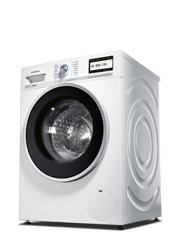 The appearance of the washing machine is characterised by a well structured interface and an integrated, calm design. The machine is operated via a precise jog dial with an LED display and a generously dimensioned TFT panel, which clearly visualises the current settings or the current cycle status. The control elements feature high quality materials.