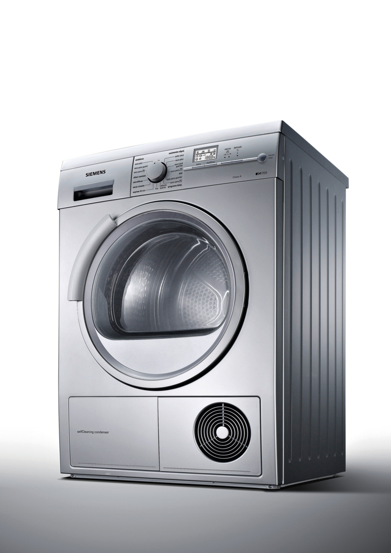 The stainless steel coloured corpus emphasises the innovative technology of this tumble dryer. In comparison with conventional devices, its heat pump reduces power consumption by 50 per cent. For the first time, the durable product features were enhanced by integrating a self-cleaning condenser. The device is conveniently operated via an LCD display with TouchControl buttons. Additionally, the programme selector was designed in high-quality solid metal.
