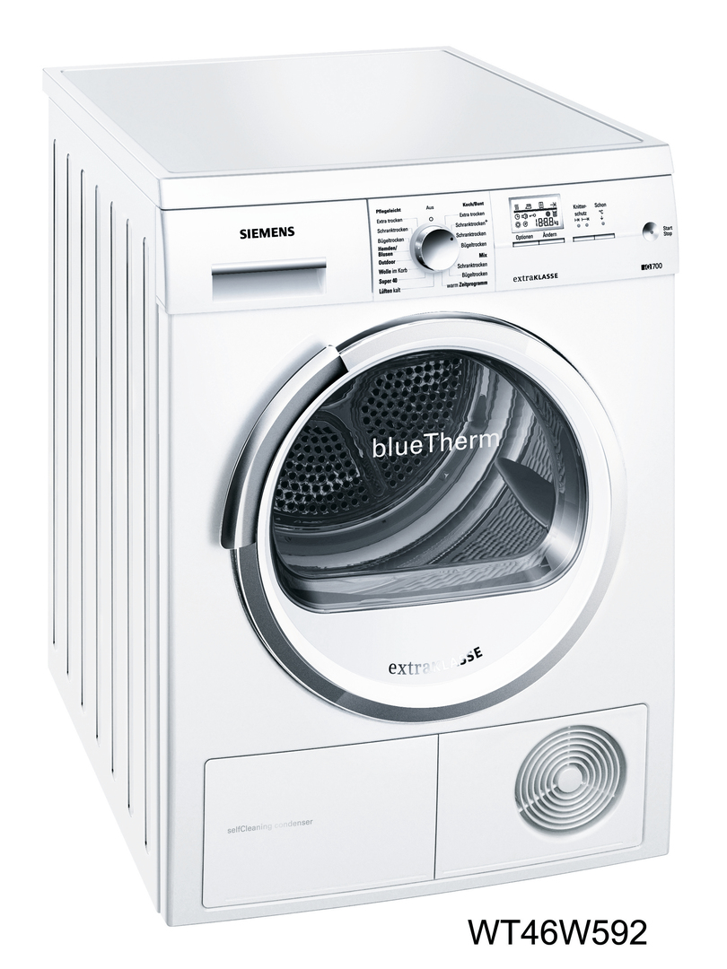 The innovative technology of a heat pump provides for extremely low energy consumption in this tumble dryer. During its whole service life, it uses 50 per cent less power than conventional laundry dryers. Furthermore, an automatic self-cleaning function of the condenser keeps the power consumption of this unit low. An unobtrusive white front panel underlines the programme selector, which is made of high-grade solid metal. Convenient and simple intuitive operation is carried out via an LCD display with TouchControl buttons.