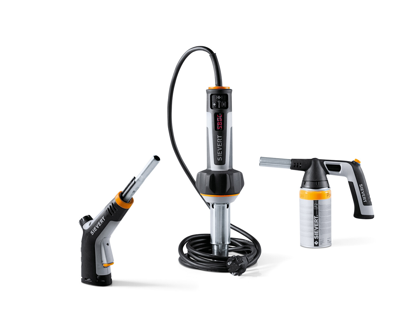 The professional heating tools range by Sievert comprises the lightweight and ergonomic hot-air hand tool DW 3000, the Powerjet torch system with replaceable burner and the Handyjet multi-purpose torch line, which features an innovative preheating tube. The range is aligned to the corporate design, for instance incorporating the brand’s colours of orange, grey and black. Furthermore, slim proportions and a contrastrich surface structure made of hard plastic and soft rubber fosters a uniform appearance.