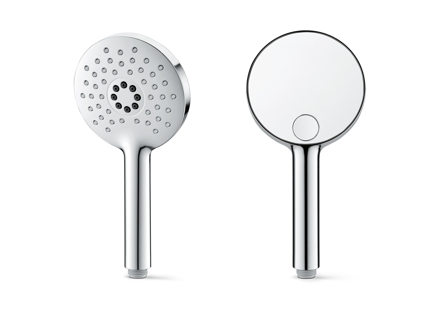 The white shimmering face plate of the Silver-moon hand shower is reminiscent of the full moon and stages the shower head in an elegant manner. The discreetly integrated button allows the selection of three different jet functions to suit individual user needs. The cylindrical handle provides a firm grip and merges seamlessly with the head of the hand shower.