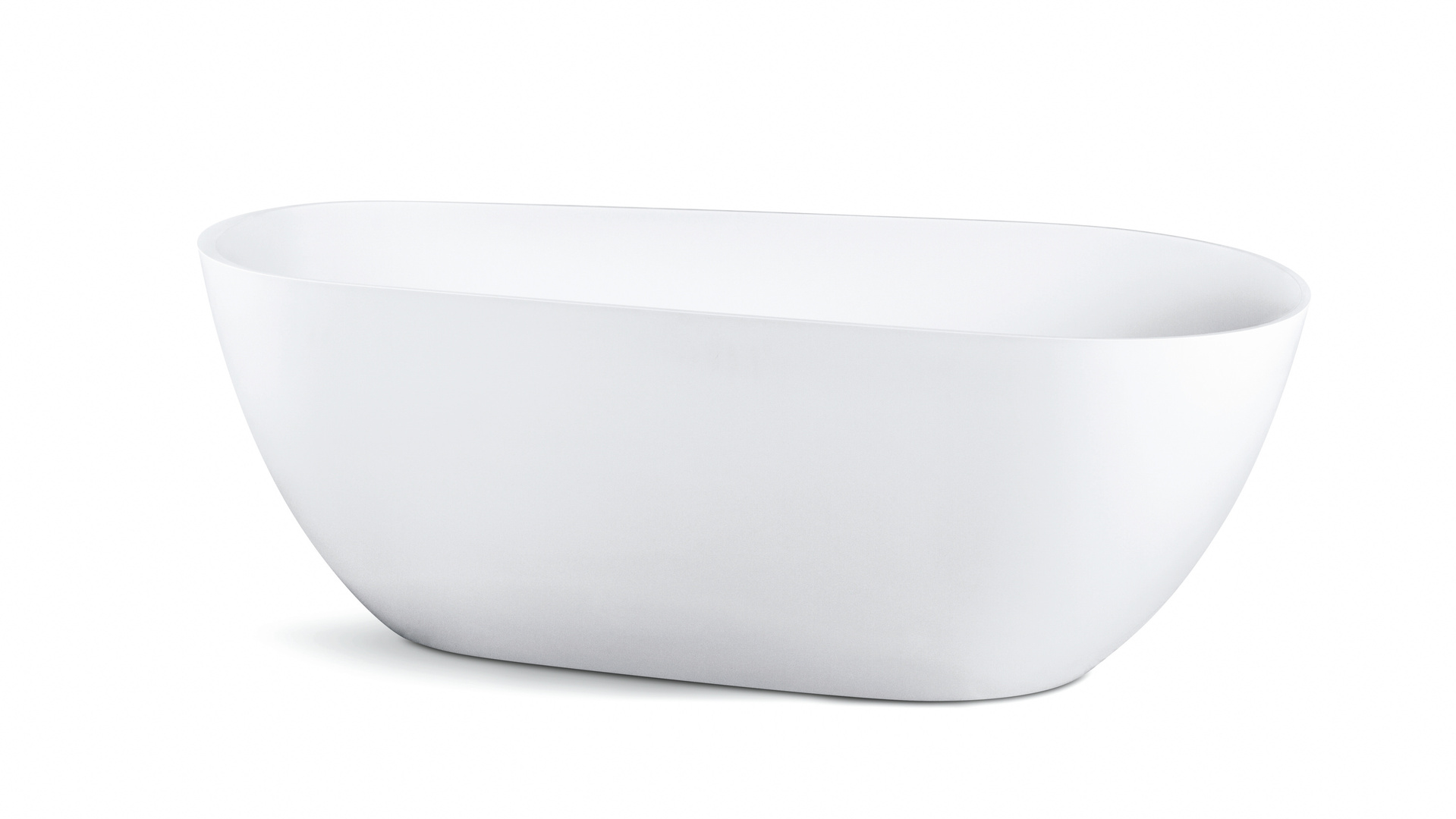 The design of the bathtub Silvia is inspired by the first known terracotta bathtubs of 1700 BCE, which were discovered in the palace of Knossos on Crete. It tapers from the shoulder zone towards the foot area. This fits in with ergonomics and reduces water consumption to 130 litres. The overflow was discreetly integrated in a thin sidewall. The corpus is made of mineral composite, the main component being dolomite. This material absorbs heat and gives a pleasant feel.
