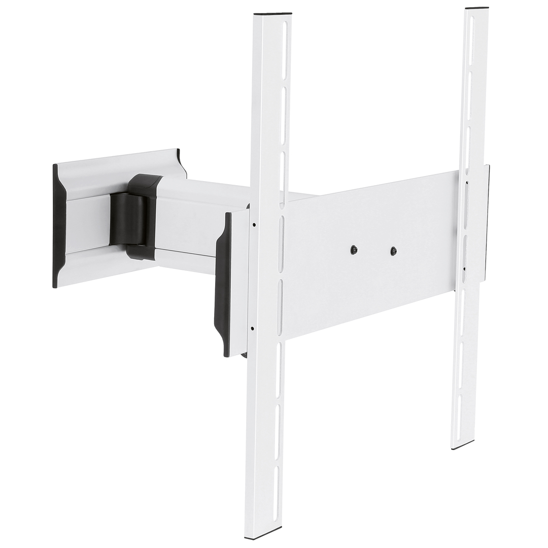 These innovative, high-gloss TV wall mounts are made of sturdy but light aluminium profiles. With each comprised of three parts, these mounts are conceived in such a way that they can be easily installed by just one person. Their heightened stability ensures that they securely support the size and weight of any flat-screen television. All cables are concealed within the cable duct of the swivel arm and are therefore invisible and protected from cable breakage.