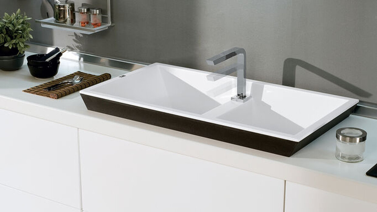 The composite sink convinces with its generous dimensions and its space-saving draining system.