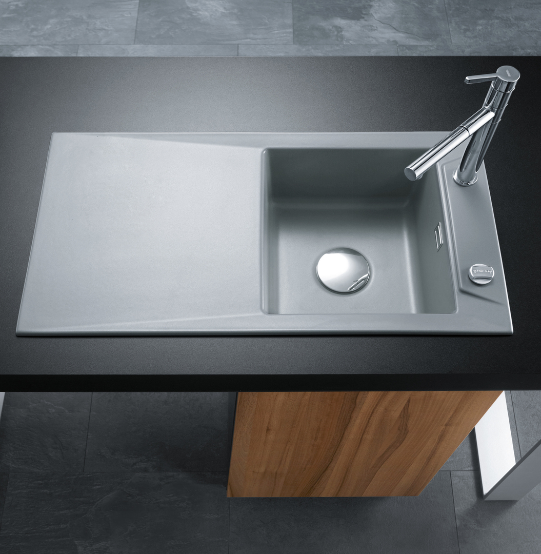 Siro 90 impresses by its clear geometric form and the functional tap hole bank located at the side, allowing flexible installation of the sink unit.