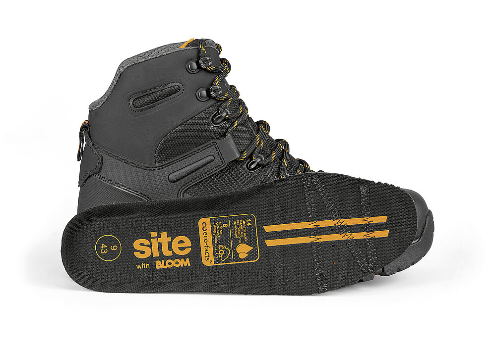 The Site Densham workwear boot is a safety shoe for the trades. It has an aluminium toe cap, a composite penetration-resistant midsole and reinforced heel and ankle areas. Breathable, lightweight and flexible materials keep the weight down and ensure the boot is extremely comfortable. As sustainability is also an important aspect, recycled polyester, cotton and a carbon neutral algae-based sole are used instead of traditional fabrics and textiles.