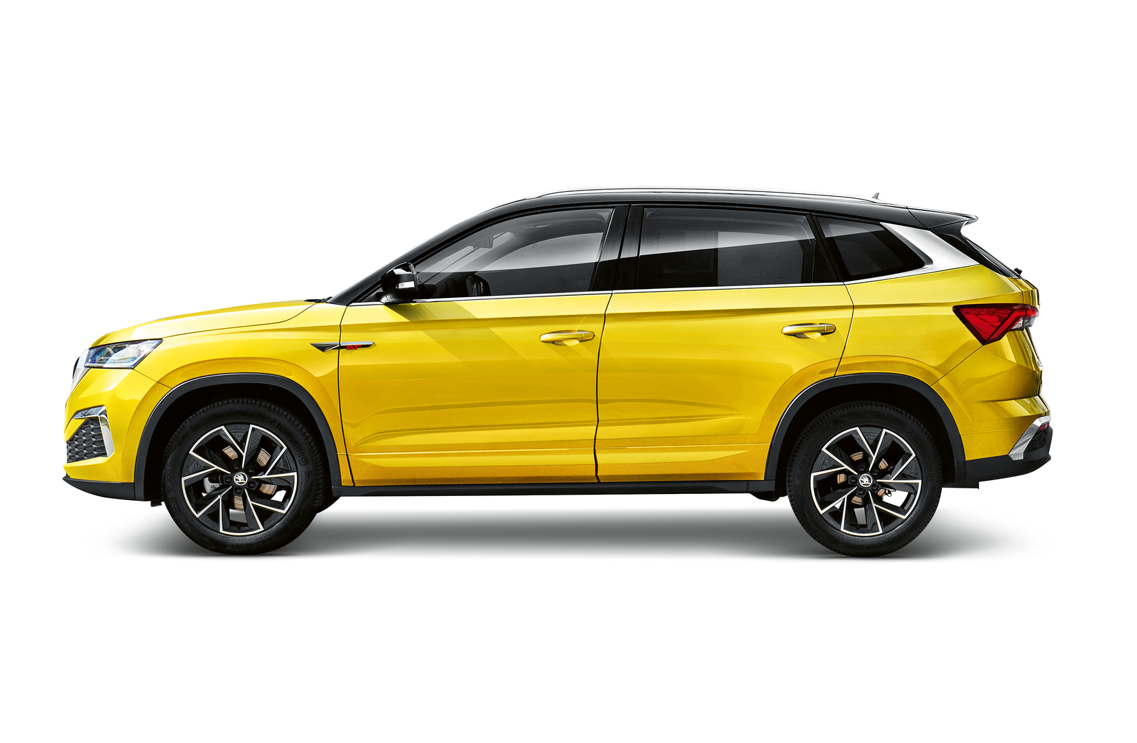 The ŠKODA KAMIQ GT combines the powerful SUV elements of the Kamiq with the sporty elegance of a coupé. This makes the city SUV look compact, but at the same time it is very roomy. The exterior is characterised by a striking front with vertical radiator grille ribs and crystalline-shaped LED headlights, as well as a flowing roof line. The rear lights reinterpret the typical C-shape of the brand. A bumper with a continuous light bar underscores the striking rear design.