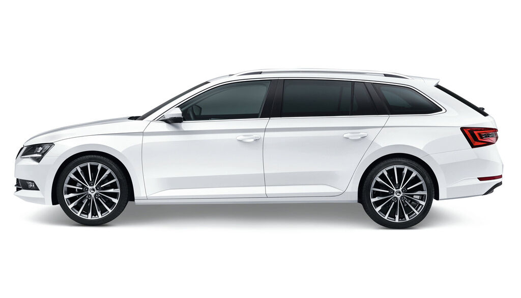 A clear geometry, elegant lines and an interplay between convex and concave surfaces characterise the appearance of the Škoda Superb Combi. Crystalline elements extend throughout the exte-rior and interior. Distinctive features of the front are the wide radiator grille, the sharply contoured, wide headlamps and a dynamically shaped bonnet. The side window line is precisely engineered and self-contained. The back view is characterised by horizontal lines, a contrasty surface design and wide LED lamps.