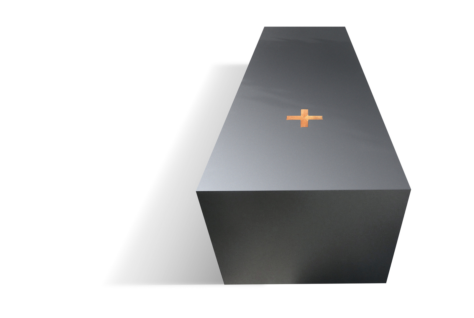 The SKYBOX coffin has been designed with clean, purist lines leaving only the rectilinear lid, that is free of any joints, visible. All corners are mitred. The coffin is available in matt black, matt dark red or in any RAL colour. The inlaid, slightly spherical ornamental design that has been carved out of expressive hard wood which is flush with the coffin and can be omitted upon request. Six special fittings connect the lid to the coffin, which is discreetly recessed and is quite shallow.