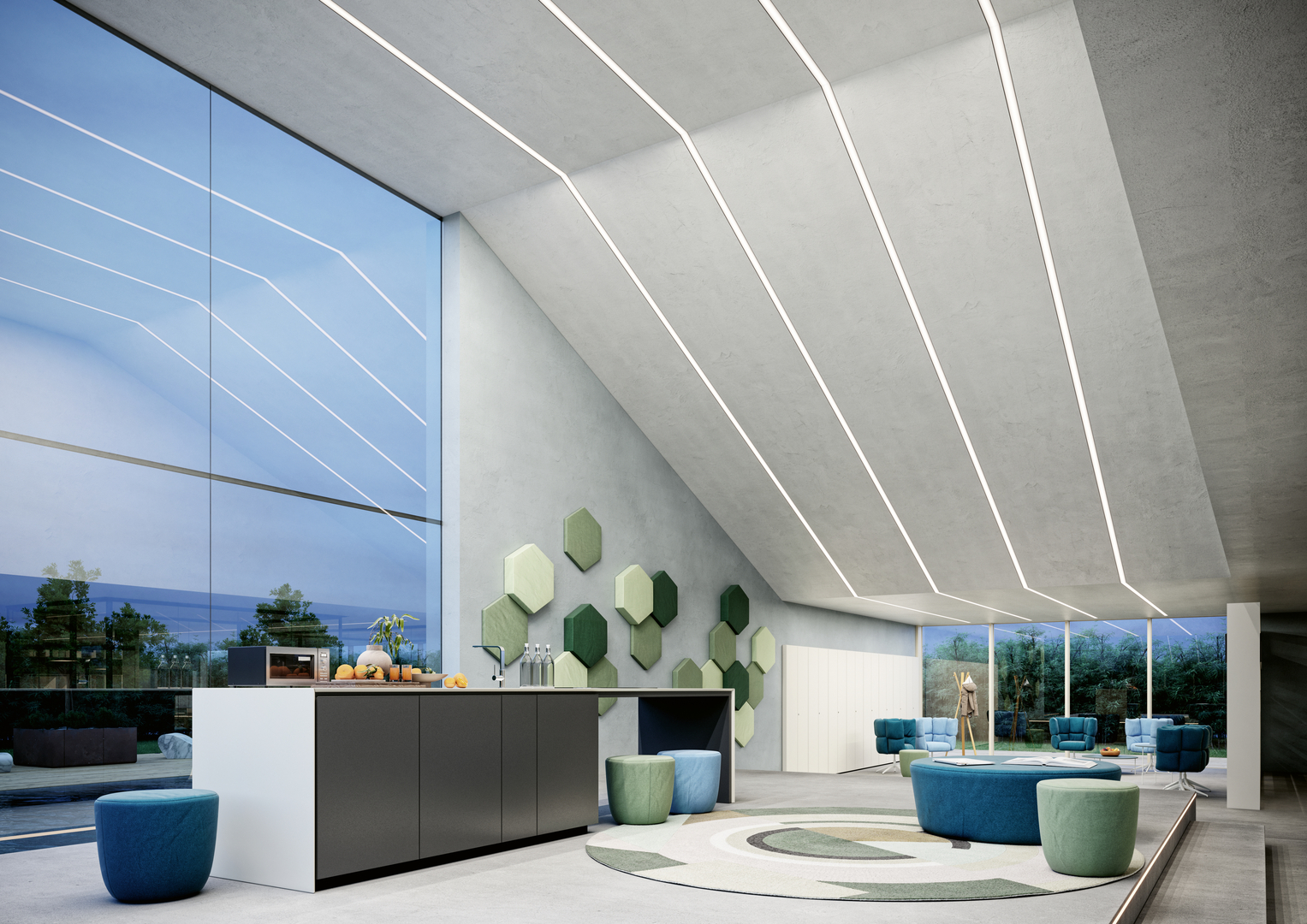 Characterised by its linear design, the SLOTLIGHT infinity II pendant luminaire can be integrated into a wide variety of furnishing concepts. Accordingly, its possible applications are extremely diverse, ranging from offices and showrooms to airports and shopping centres. Developed on the basis of the manufacturer’s circular design rules, the lighting fixture can be easily configured with just a few clicks. It is also available in straight, X and T shapes.