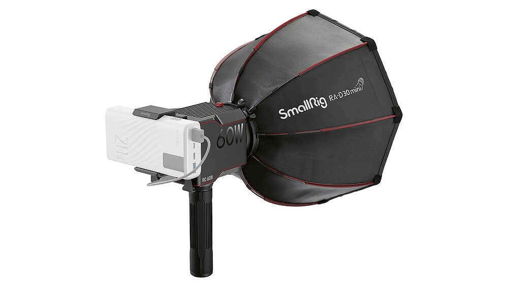 The main body of the SmallRig RC 60B COB LED video light is made of flame-retardant PC-ABS plastic and is only reinforced with metal at the base, which has reduced the weight by 30 per cent. This makes it light enough to be used as a handheld light despite the built-in rechargeable battery. The SmallRig RC 60B is easy, quick and precise to operate. It has two separate buttons for adjusting the colour temperature and lighting, as well as a 1.3-inch LED display.