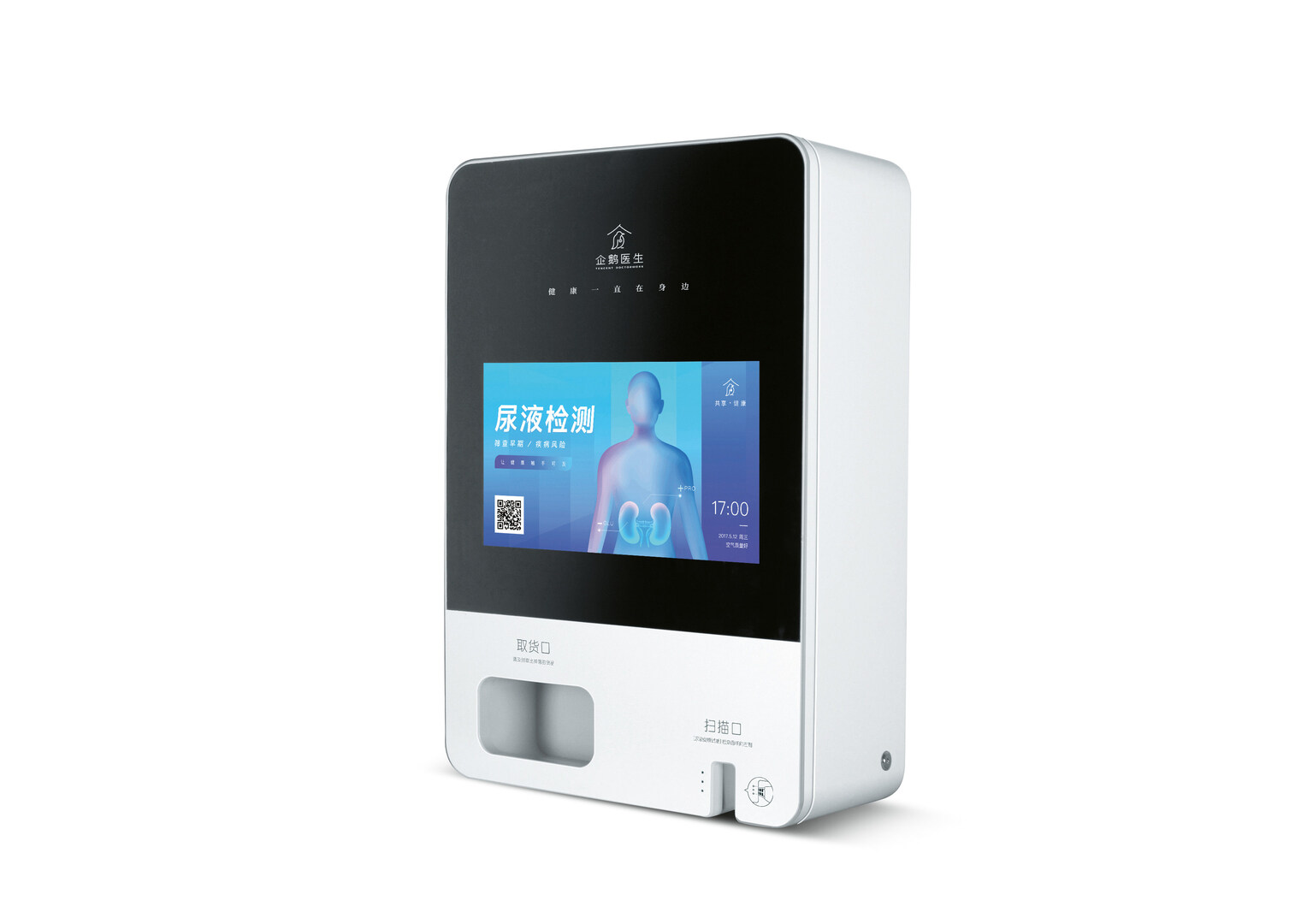 This testing machine for the examination of bodily fluids combines a urine sample with intelligent technology. It was developed for use in public toilets, in order to make disease risk screening available to everyone. Users scan the QR code on the display with their smartphone, pay online, take a test strip out of the dispenser and carry out the test. Subsequently, they scan the test strip and swiftly receive a test report via their smartphone.