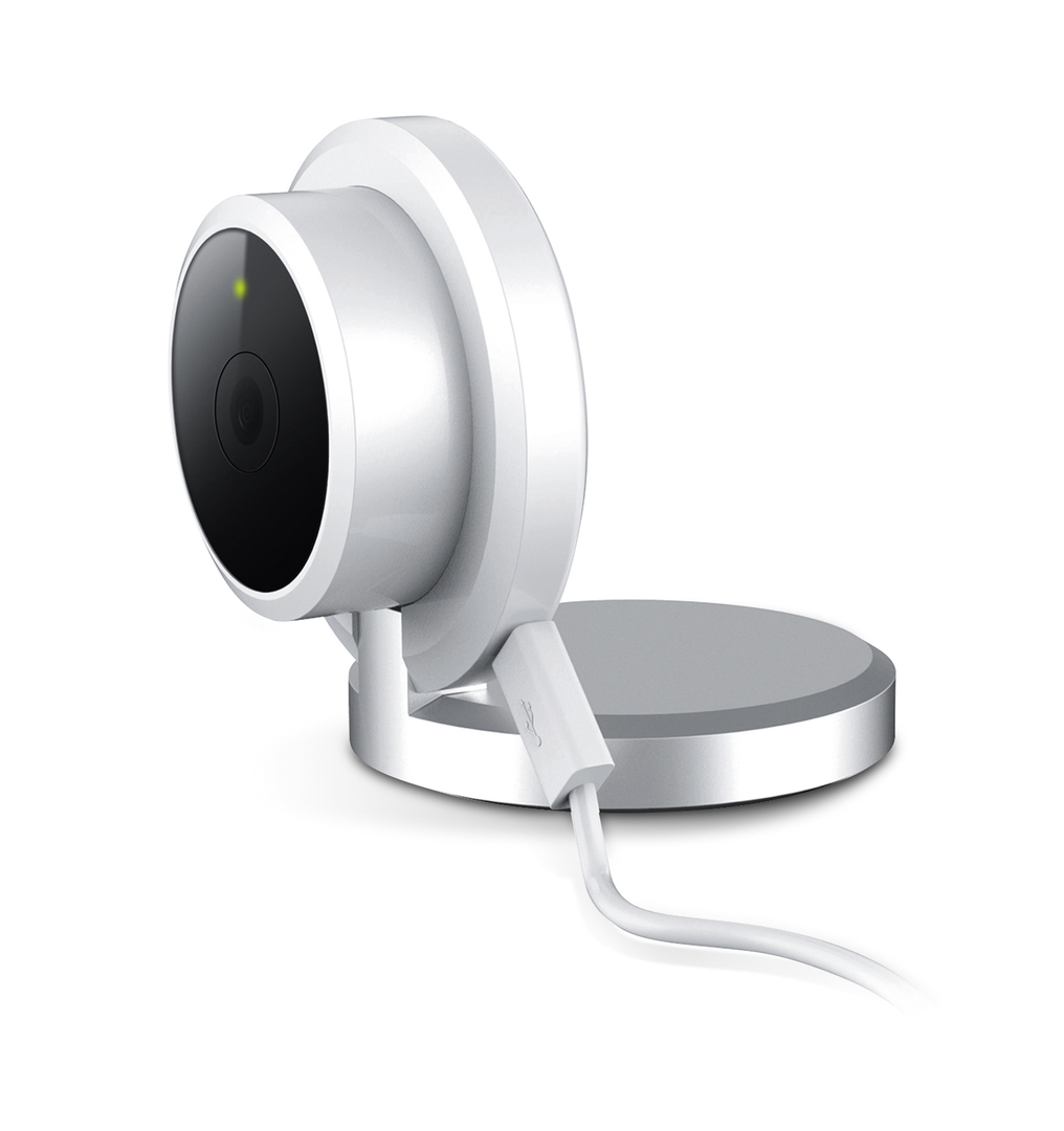 This camera is a cloud-based video monitoring device. It automatically transmits messages from the area being monitored to a smartphone, tablet or PC via Wi-Fi as soon as activity is detected. With its round design and hinged circular stand, the device offers solid support. It can be conveniently taken along and, thanks to its stand, easily mounted to walls, ceilings or simply placed on a table.