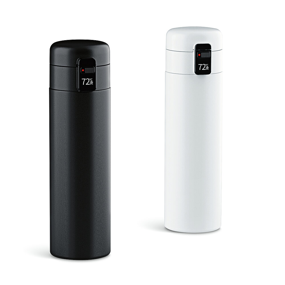 The Smart Reminder Vacuum Bottle reminds its users to drink regularly through a vibrating alarm. A small OLED display shows the water level and temperature when the lid is tapped and also features an activable reminder function. The bottle can be paired with a smartphone and the dedicated app provides a comprehensive overview of the data. The bottle is made of medical stainless steel and the spout of antibacterial material.