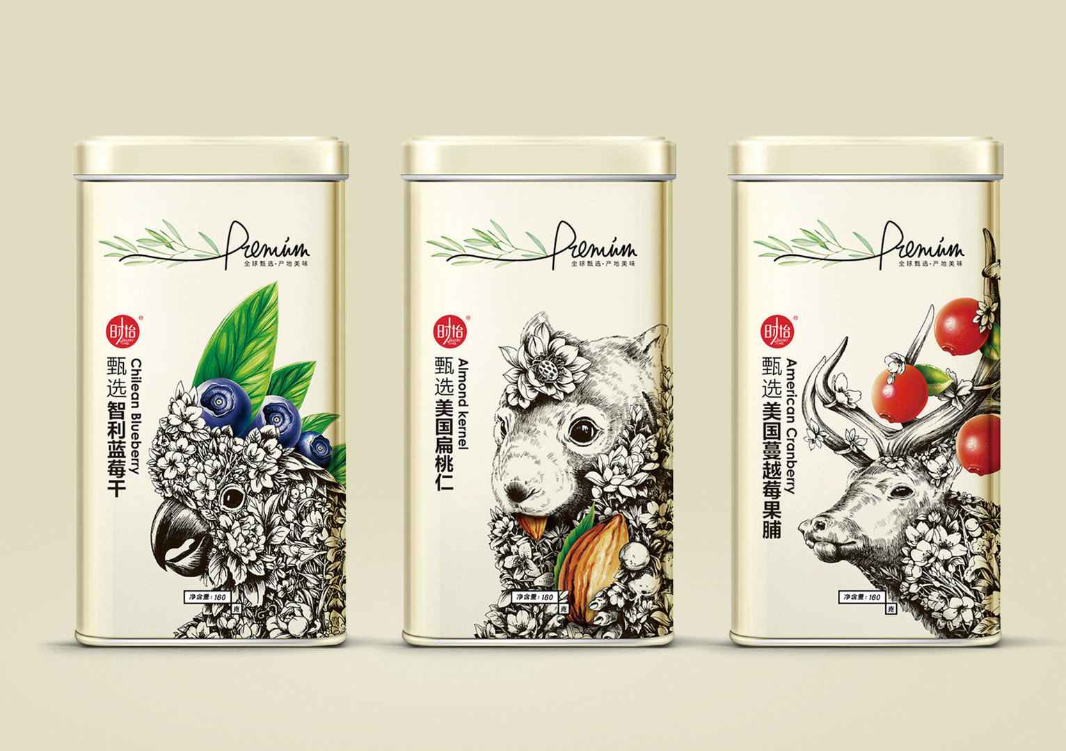 The link to nature is a key element of this packaging concept for premium snacks. In tune with the brand’s nature-oriented approach, plant shapes and light-coloured wood in the outer packaging reference the natural source of the dried fruit and nuts. The bright shade of orange used in the carrier handle on the box is an eye-catcher, while the cut-out shapes give an enticing glimpse of the snack tins inside. Featuring an animal motif with an elaborate graphic design, each tin reflects the value of the product and offers the possibility of immediate emotional attachment.