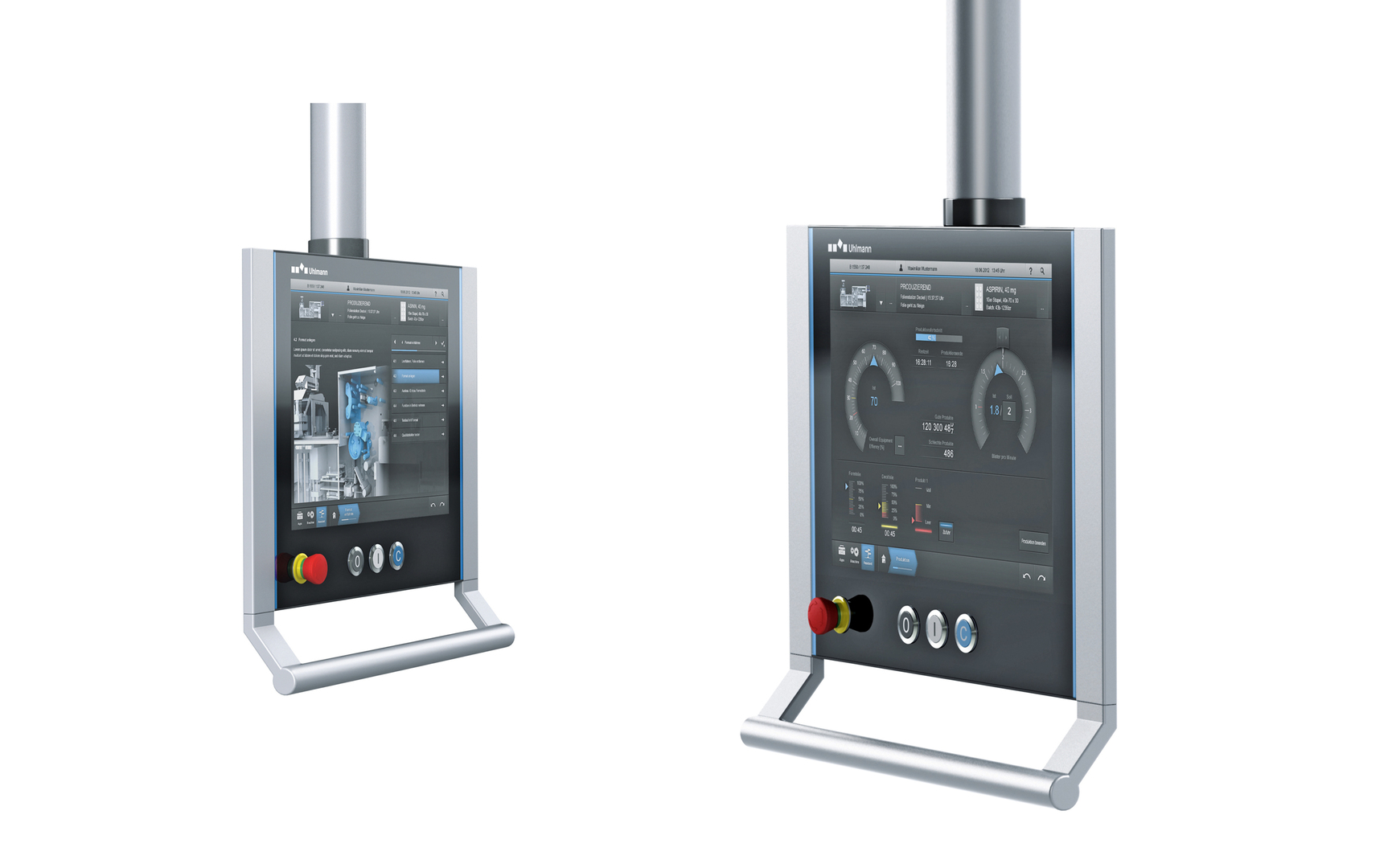The SmartControl operator terminal for pharmaceutical packaging machines has a full-size glass surface and an extremely flat, integrated touchscreen. It is operated by touching the immediately understandable symbols and buttons or using a swiping motion. Since the terminal can be rotated, the interfaces for peripheral devices integrated into the rear are both well-protected and easily accessible.