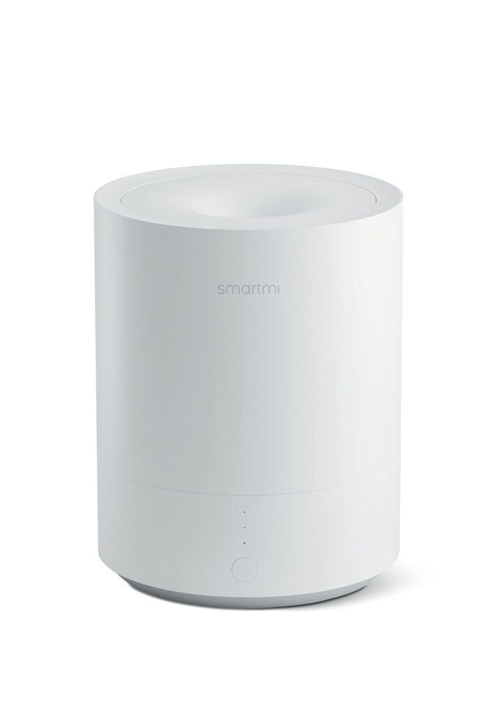 Smartmi is an ultrasonic humidifier with a large misting volume. The device can be filled with water via the funnel-shaped opening at the top. The air outlet is equipped with a collecting tray that prevents water droplets from leaking onto the floor. A push button located in the centre of the front can be used to switch between the three operating modes of the humidifier.
