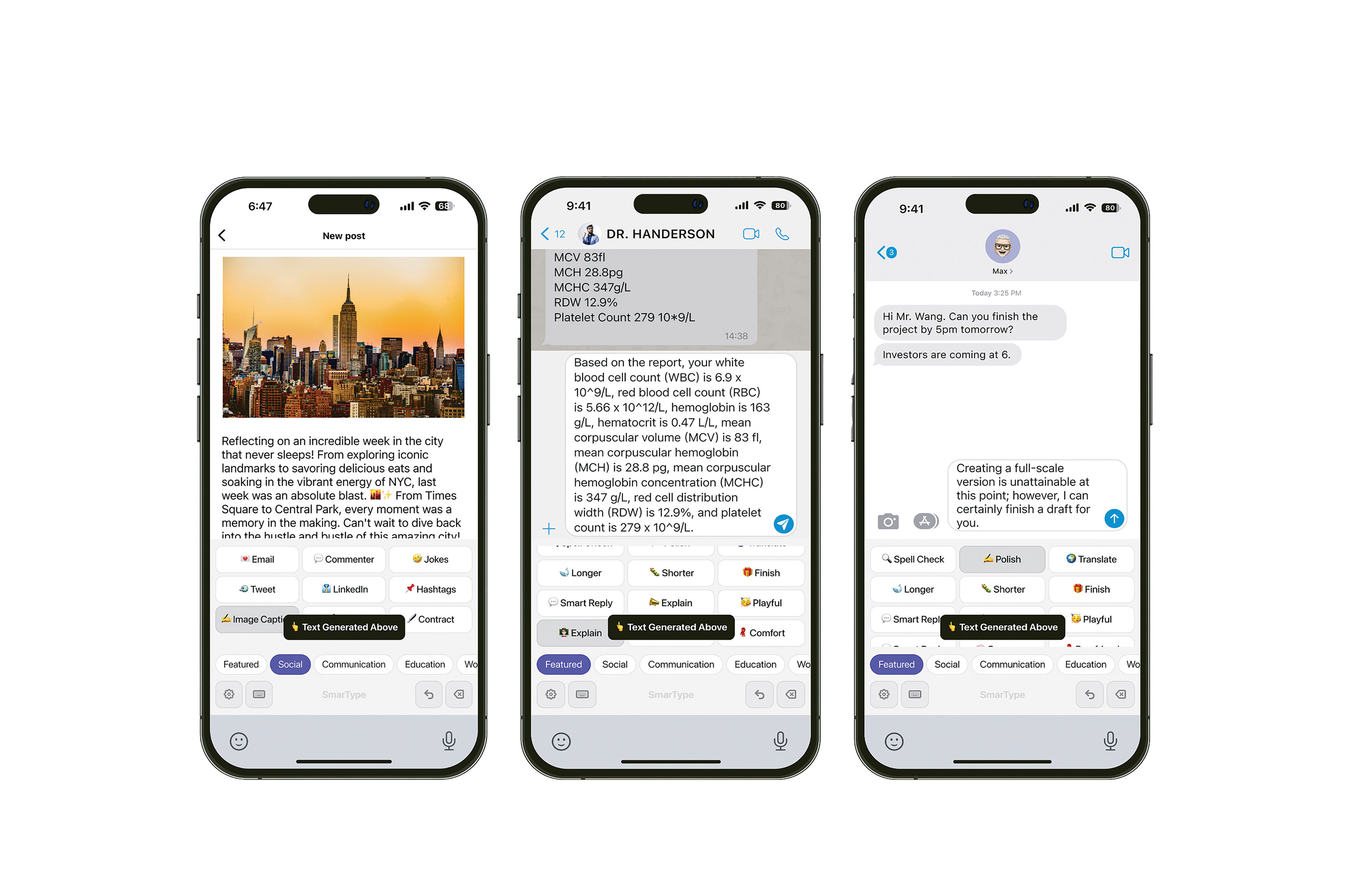 SmarType integrates AI chatbots into a virtual keyboard, transforming every input box into a seamless chatbot session. Traditional AI chatbot interfaces require manual context and response transfers, which disrupt flow. SmarType introduces a context-aware interface by analysing clipboard and screenshot data on demand. It offers intuitive, context-aware assistance while respecting privacy, eliminating manual descriptions, and improving AI accessibility for everyday tasks.