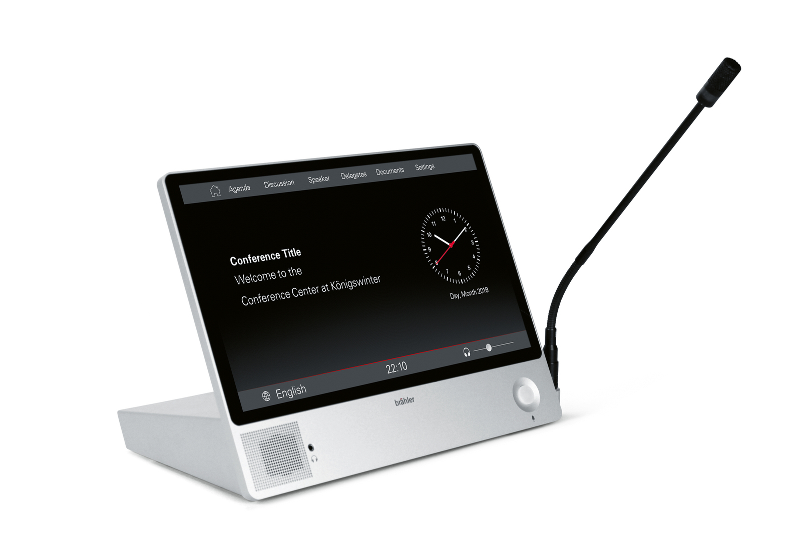 The SMic133 is a high-quality and modern conference unit that creates innovative communication conditions. Its display housing is milled from a single aluminium block. The 13.3” Full HD touch display enables delegates to view all relevant conference documents and participate efficiently in the conference. The Delegate App provides conference participants with updatable information about the conference activity while in use. Agendas, conference documents, film and photo material, participant lists, contact information, voting results, etc. can be viewed quickly and easily.