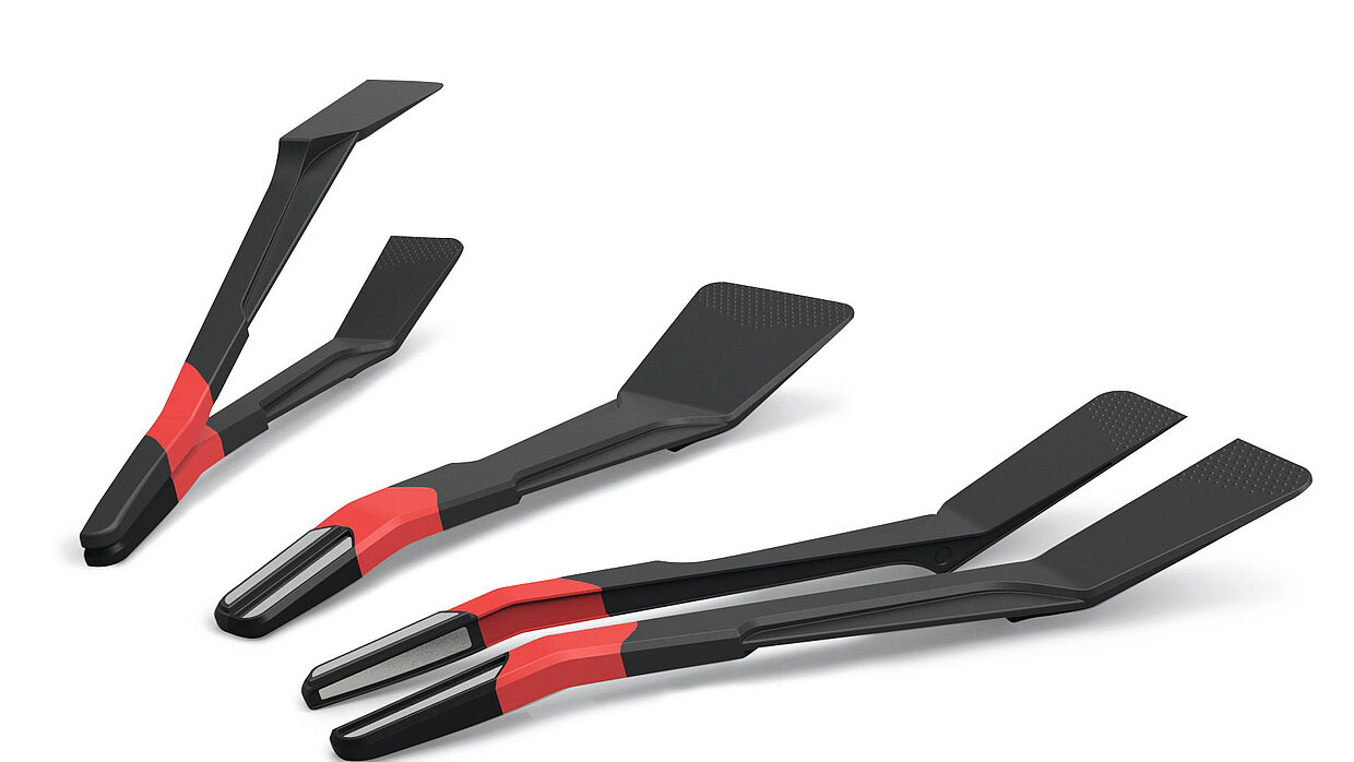 Snapbit is a hands-free kitchen strainer which can be attached to the rim of a pot in order to strain liquid neatly. By means of an integrated hinge system, Snapbit can be adjusted at various angles, adapting it to the respective cookware. A large handle makes the attachment easy. The contact surface between the strainer and the pan is made of heat-resistant silicone. The strainer weighs about half that of similar kitchen strainers and is only a third of their size.