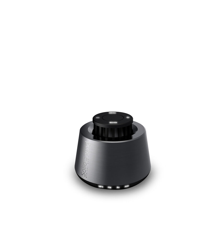 The cone-shaped Solid Sound digital music player emits musical sound in such a way that it is evenly distributed throughout the room. Thanks to its small size, the device can easily be carried along to be set up and used in any kind of environment. The player is made from recyclable materials, and its design placed emphasis on optimising the cost-benefit factor.
