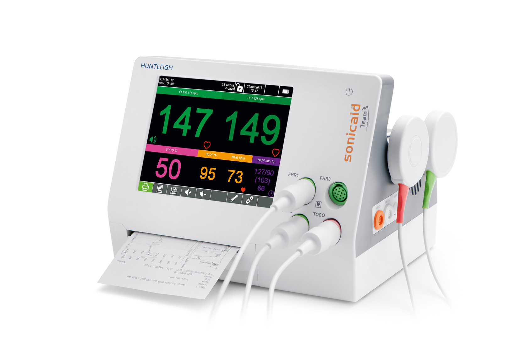 The fetal monitor Sonicaid Team 3 is intuitive to use thanks to its icon-based touchscreen. The heartbeat of mother and child are rendered separately on the display. The fetal heart frequency is displayed in large letters and is easy to read, even in the case of twins and triplets. The simple design language of the device makes it appear less dominant at the patient’s bedside. The integrated battery enables continuous monitoring, even during patient transport.