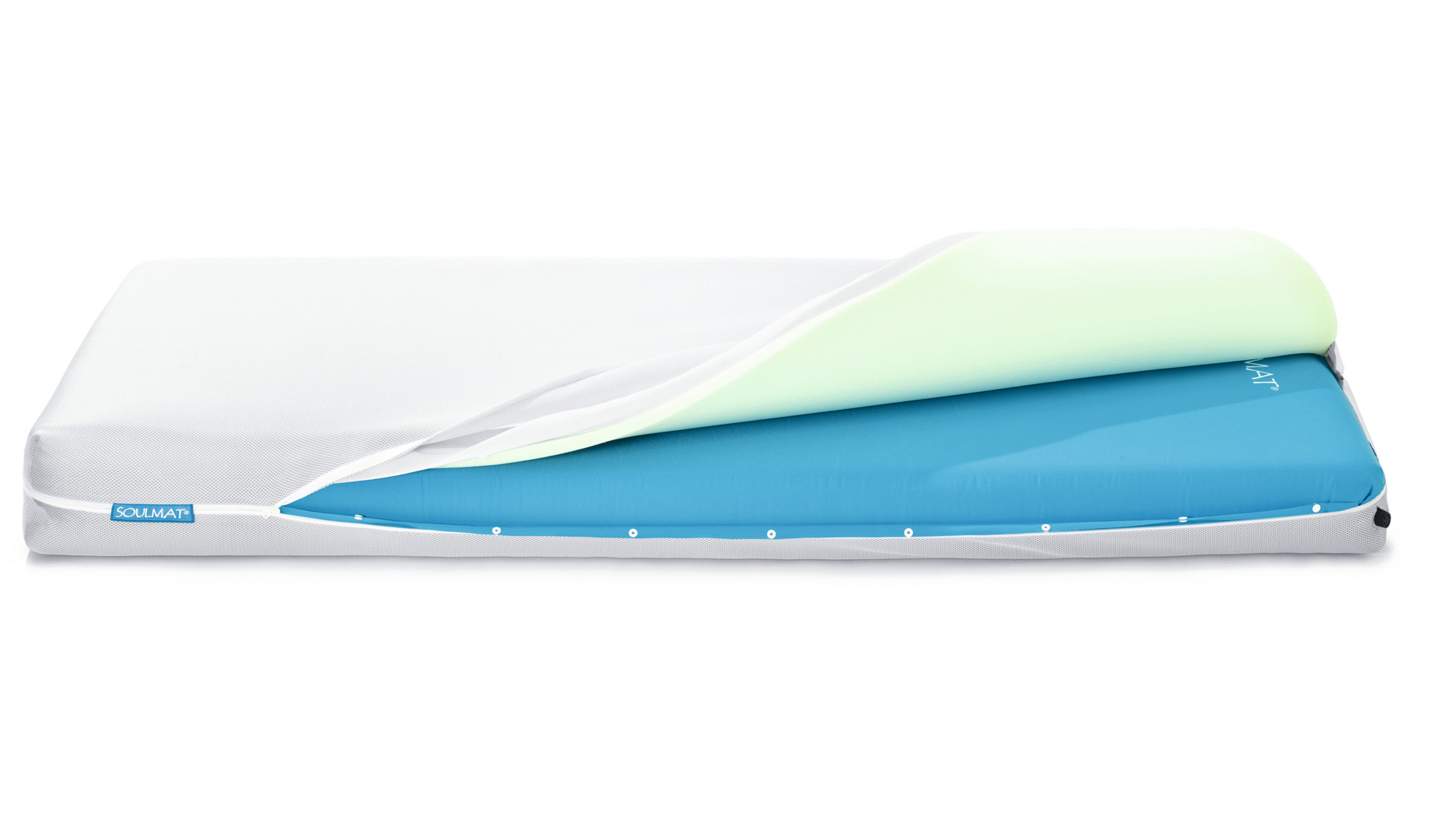 Thanks to dynamically adjustable inner layers, the Soulmat mattress allows precise adjustment to the body. The design approach towards individual configurations for optimal comfort pushes the boundaries of familiar design patterns. The individual modules of this mattress are environmentally sound, washable and suitable for people suffering from allergies. This extraordinarily light mattress thus emerged with impressively sophisticated functionality.