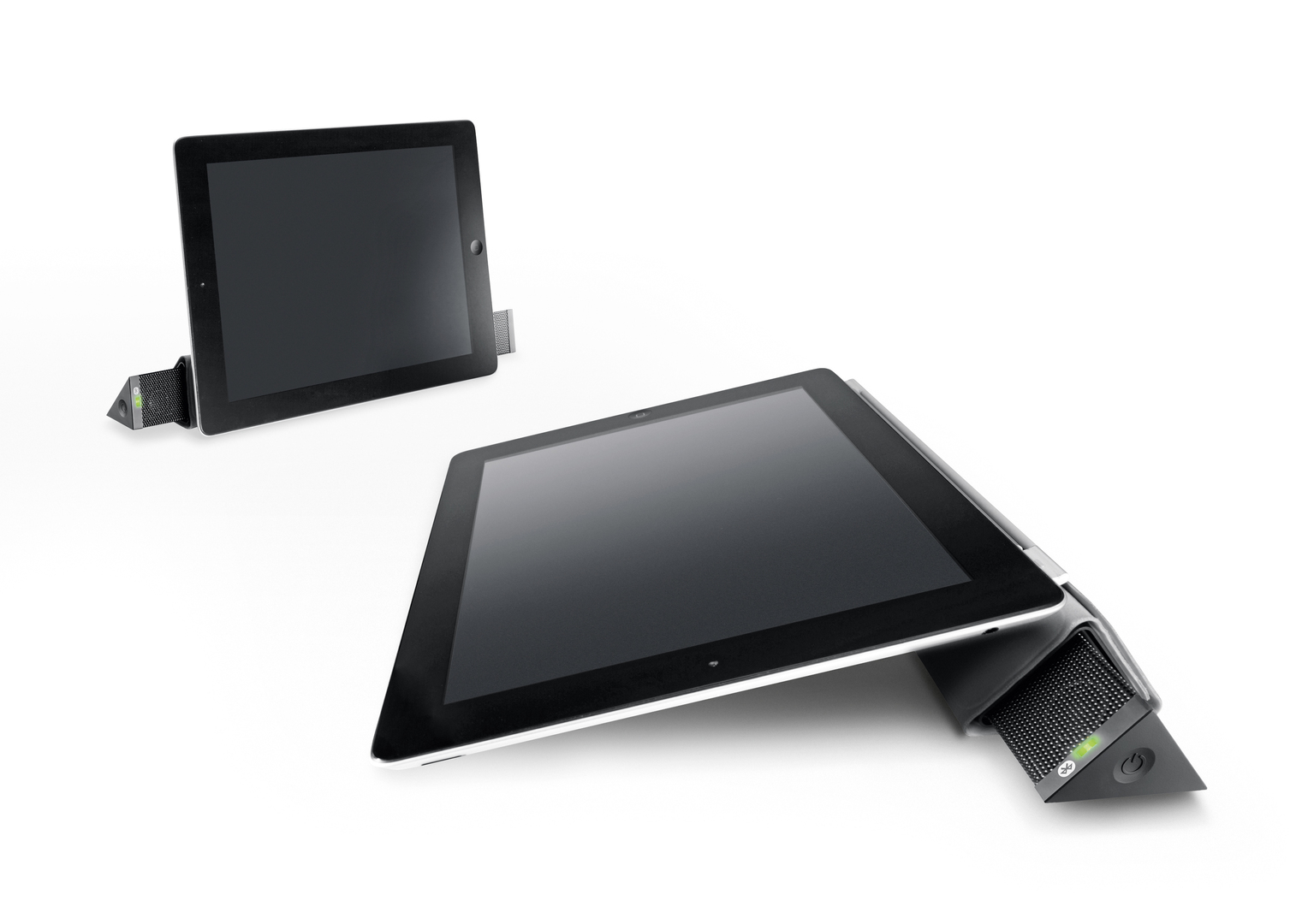 The geometric form of the speakers is optically appealing and, in connection with the iPad 2 smart cover, very functional.