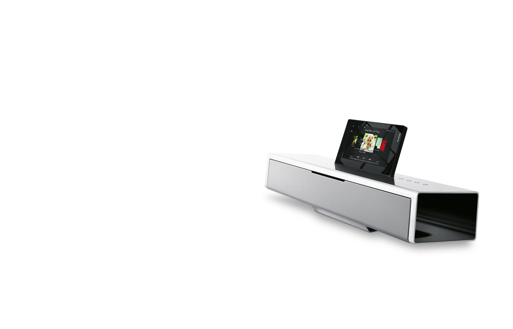 With its aluminium casing and lateral insets, this audio system has a high-grade, elegant appearance. Another notable feature is the innovative control concept via touchscreen.