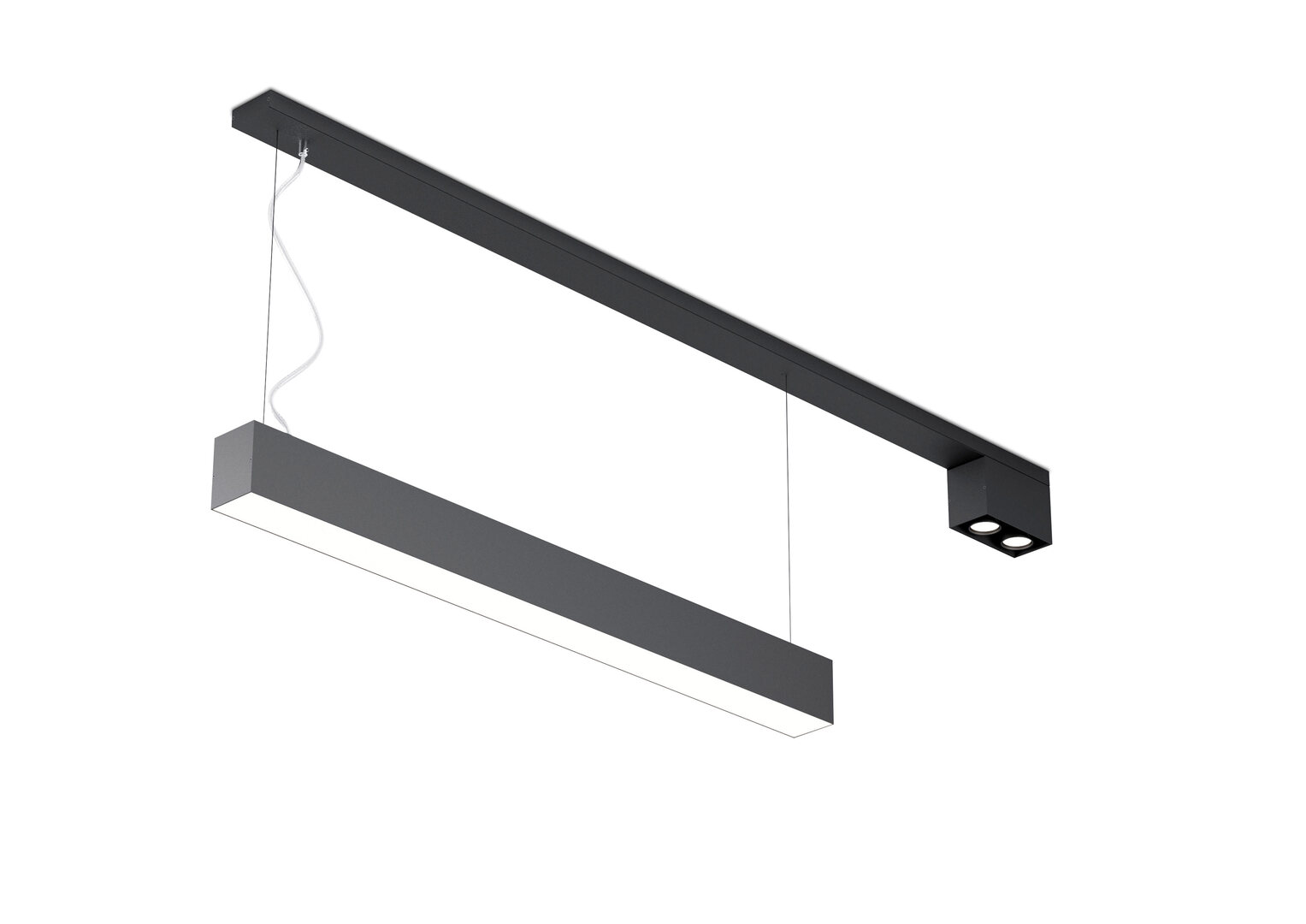 The Spaze lighting series uses a design vocabulary which is highly architectural in style. The collection includes both a T5 fluorescent tube and LED spotlights. Due to its minimalist lines, the black light body harmoniously blends in with large kitchens or offices, and is also suitable as a light source above retail counters or in reception areas. Spaze is available both in a ceiling mounted version and as a pendant light. All the lights can be dimmed and are controlled digitally via a DALI interface.
