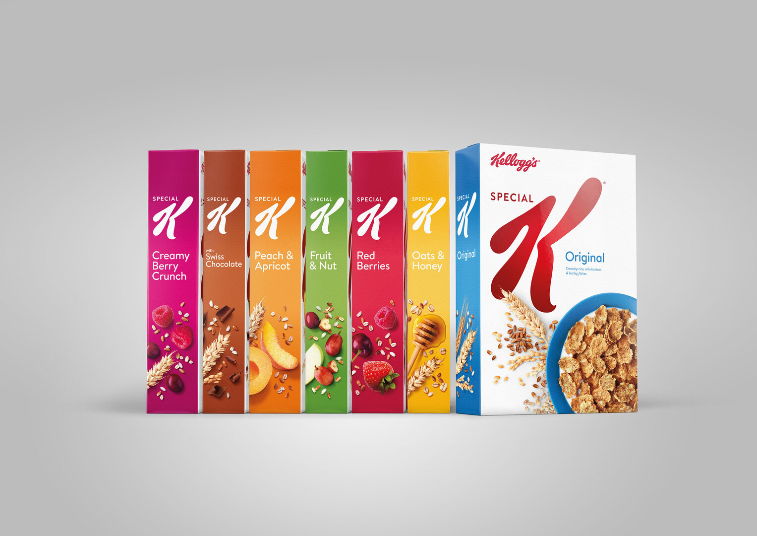 Special K is one of Kellogg’s most established cereal brands, first launched in the USA in 1955. The sales of branded cereals have been in decline due to their decreasing relevance for today’s female consumers. A redesign of the brand re-established Special K as a modern food brand for women who want to eat nutritious foods rather than count calories. In line with the redesigned logo, the new packaging design focuses on the depiction of the healthy ingredients.