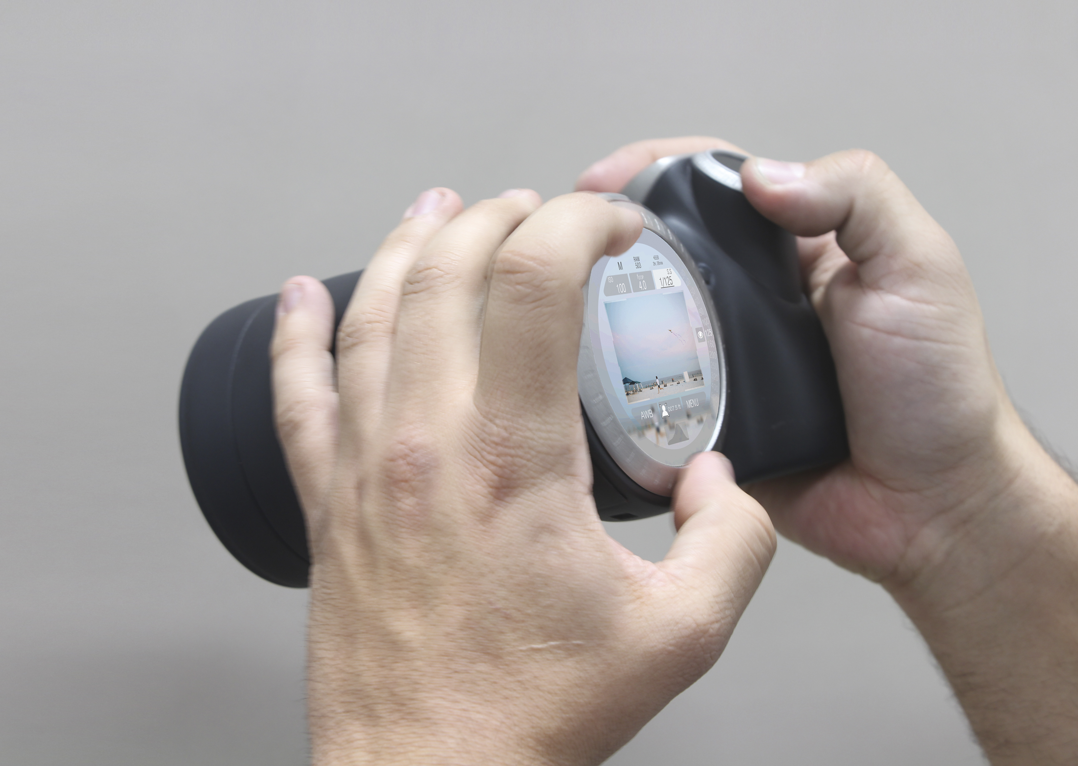 The Sphaera Camera exhibits many features that make photography a more engaging and accessible experience. The form of the camera ensures stability through a more compact and secure hand placement on the camera, leading to less motion blur. The two camera dials give the user ultimate flexibility to make discrete and continuous changes to the camera’s settings. The large dial is intended to be set to “zoom” or “aperture” function since both can be continuous and, in zoom lenses, linked. The small dial can be set to “shutter speed” or “ISO” function. The interface is designed to allow the user to change the settings on the fly while providing users with visual feedback of the changes they make. The designers started the project with a blank slate, interviewing and observing professional photographers and hobbyists. Through ethnographic research, they discovered essential functions and form expectations. It was found that enthusiasts were quick to try and accept new technology, especially when it came to mirrorless cameras, but many did not want to sacrifice using prime, zoom and art lenses. One of the biggest pain points observed was the disconnect from users who take pictures on smartphones or point-and-shoot cameras, as well as the complexity of the interchangeable-lens camera interface. These insights led the designers to design a camera that vastly improved the user experience by having two touch screens that allow for seamless control while providing users with the tactile feel of dials and buttons. The result is a distilled camera experience bridges the gap between traditional DSLR or mirrorless camera users, and the photographers of the future.