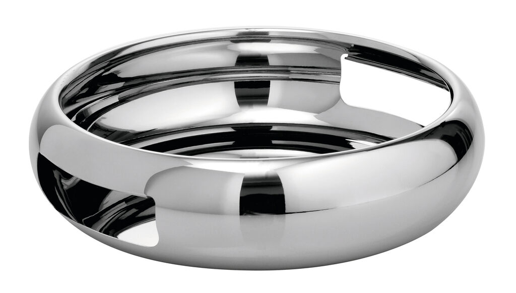 Sphera follows a rational design approach that combines high functionality with a visual reminiscence of the space age during the second half of the 1960s. The bowls collection wants to give the impression of having jumped straight out of films like “Barbarella” with Jane Fonda by Roger Vadim or “Space Odyssey” by Stanley Kubrick. Associations with extravagant objects are formed that were characteristic of a vanguard living style. The bowls, trays and decorative glass objects of this collection are characterised by a curved form language and thus clearly set themselves apart from traditional forms. The collection offers a variety of applications: its large stainless steel bowls serve as a tray or a decorative element on the table; the smaller bowls can be used to accommodate or collect something. Together with the small tray, the vessels, made of borosilicate glass, present a stylish cruet stand for vinegar, oil, salt and pepper.