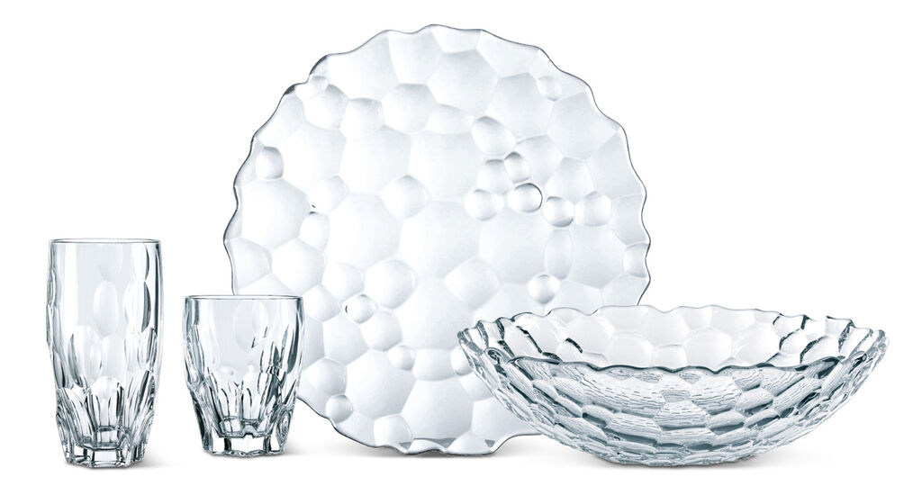 Sphere was developed as part of the NextGen design projects, in collaboration with the Academy of Arts, Architecture & Design in Prague. Thanks to its spherical convex form language, the crystal glass series plays with the transparency of the material and creates fascinating light refractions. Comprising drinking glasses, plates, bowls, vases and a votive, the series is highly versatile. Hi-tech glass techniques are used to create high quality products at a competitive price point.