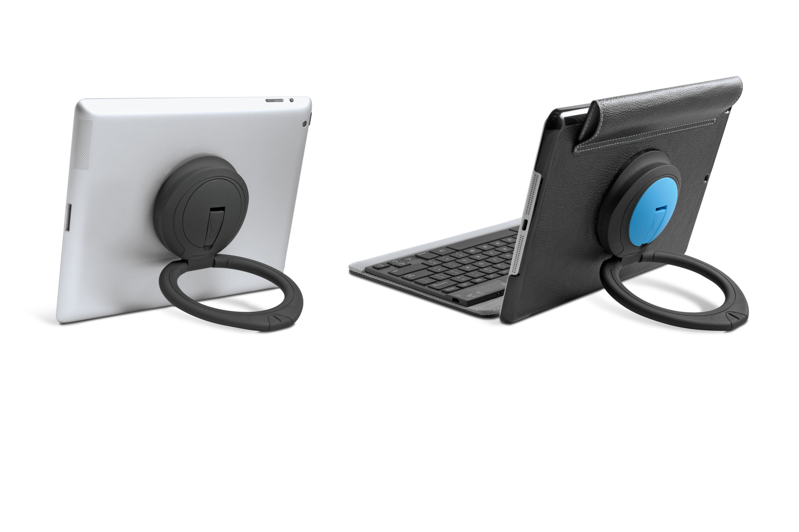 The SpinpadGrip is a detachable handle that simultaneously allows users to carry, hang or spin a tablet. The handle offers 360 degrees of rotation and 180 degrees of reclining. The product is attached to the back of a tablet and can be folded together when not in use. The rubberised finishing prevents the handle from slipping out of the hand. It is available as a single- or dual-colour model.