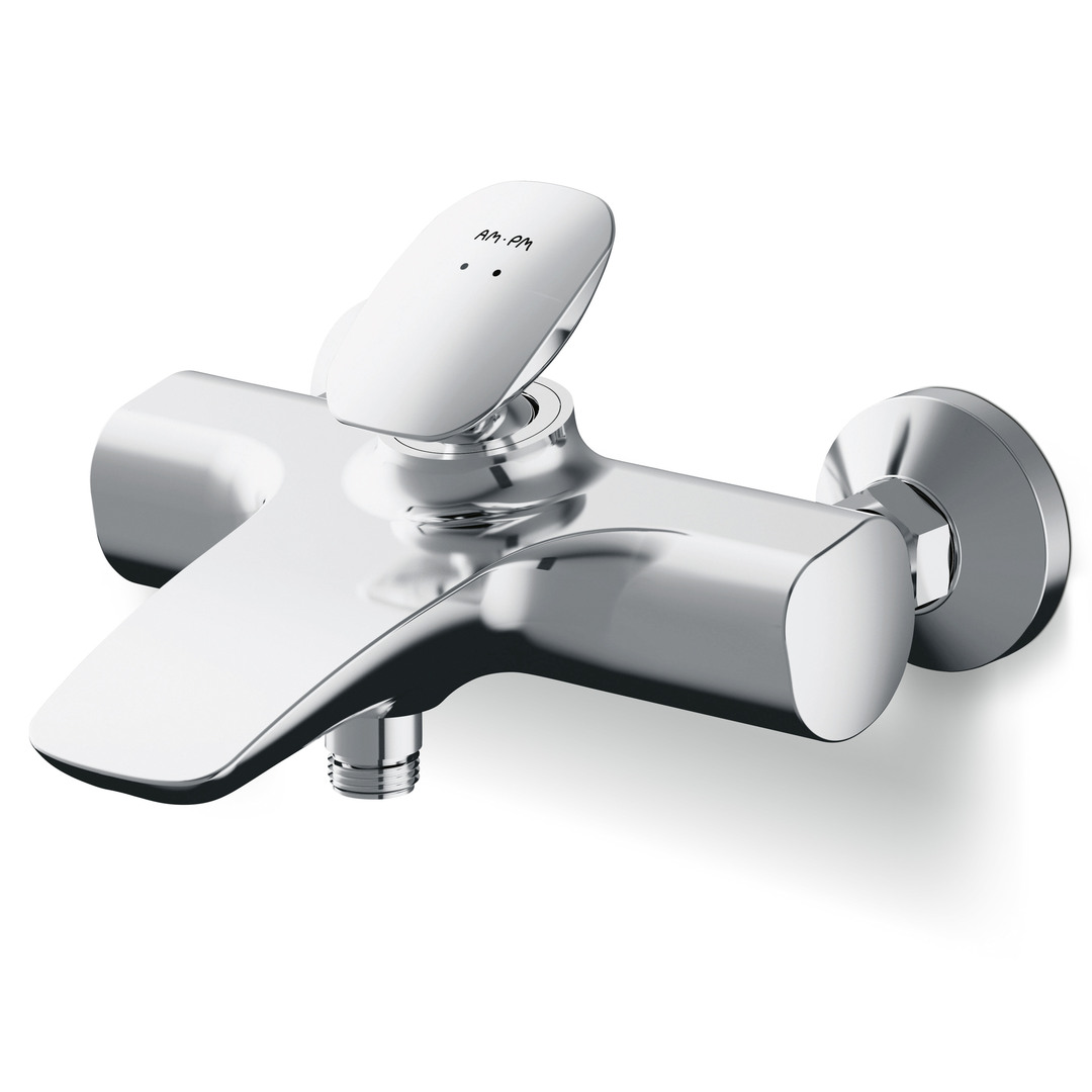The single-lever bath and shower mixer successfully continues the characteristic design style of the Spirit V2.0 collection. The T-shaped mixer body with its 194-mm-long spout is slightly curved like the short lever; the precise lines lend structure to the geometric contours. The mixer is intuitive to operate. Applying soft pressure suffices to regulate the water flow and temperature in a pleasant and precise way.