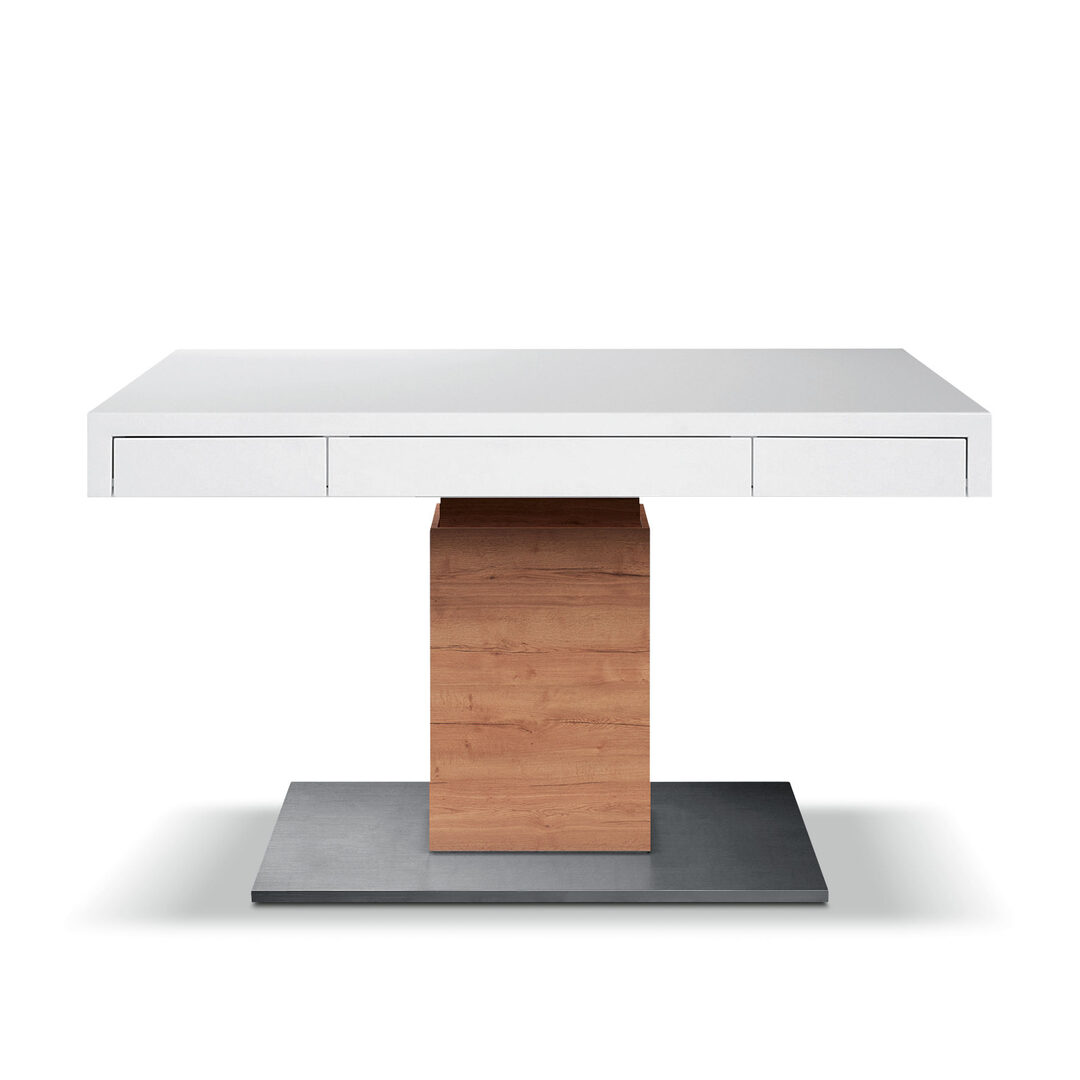 The SQR kitchen island presents itself as a purist cube which offers an area of 132 x 132 cm for cooking, eating, celebrating and working. The worktop hides an induction cooker, appliance connections and storage spaces, which can be noiselessly pulled out. By means of elegantly countersunk switch elements, the height can be adjusted ergonomically for every user scenario. All functions can be operated intuitively. Due to its compact construction, the island takes up little space in small rooms.